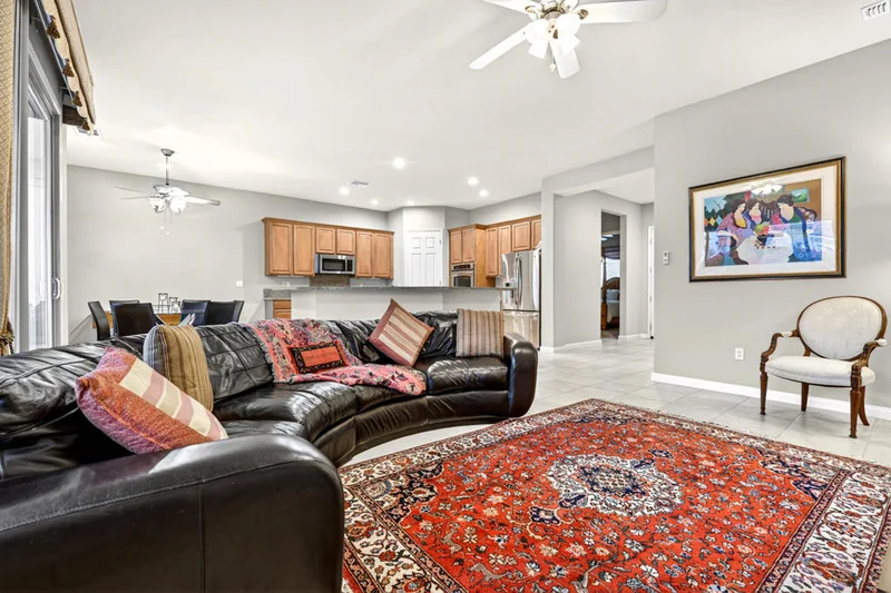 Located on a desirable corner lot within the prestigious 55+ active adult community of Sun City Shadow Hills, this beautifully appointed Avalino floor plan offers 2 bedrooms plus a den, 2 bathrooms, and 1,763 square feet (EST.) of thoughtfully designed living space. Manicured front landscaping and a welcoming entry set the tone for the comfort and quality found throughout the home. Inside, the bright, open layout is enhanced by tile flooring in the main living areas and brand-new plush carpeting in both bedrooms and the den, creating a perfect balance of style and comfort. The well-designed kitchen is ideal for everyday living and entertaining, featuring granite countertops, stainless steel appliances, a gas cooktop, double ovens, and generous cabinetry. The spacious primary suite serves as a private retreat, complete with a spa-inspired bathroom offering dual vanities, a step-in shower, and a relaxing soaking tub. The guest bedroom includes a walk-in closet and is thoughtfully positioned for privacy, making it ideal for visitors or versatile use. A dedicated indoor laundry room with upper cabinetry adds convenience, while the attached two-car garage provides ample storage. Step outside to the covered patio and enjoy the low-maintenance desert-landscaped backyard--perfect for morning coffee, evening gatherings, or simply unwinding in the desert breeze. As a resident of Sun City Shadow Hills, enjoy a vibrant resort-style lifestyle with access to championship golf courses, elegant clubhouses, fitness centers, pools and spas, tennis and pickleball courts, and a wide array of clubs and social activities designed to inspire connection and enjoyment.