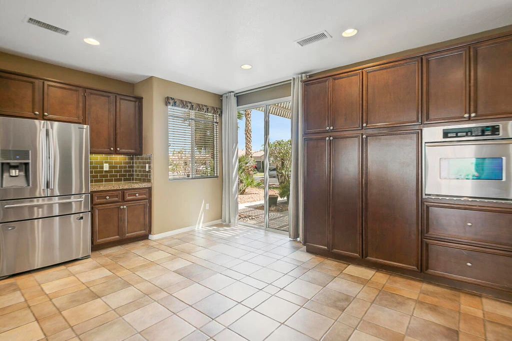 Tucked inside the gated Desert Collection in North Indio, this home feels instantly welcoming. With 2,273 sq ft, 3 bedrooms, and 3 full bathrooms, including two private suites, the layout is ideal for hosting guests, multi-generational living, or simply having space to breathe. The primary suite is your personal retreat complete with dual vanities, a soaking tub, walk-in shower, and a generous walk-in closet. The kitchen is made for gathering, featuring granite countertops, warm wood cabinetry, and a breakfast bar where mornings naturally linger a little longer.Out back is where desert living truly shines. A private pool and spa, a covered patio for outdoor dining, and glowing sunset skies set the scene whether you're entertaining friends or enjoying a quiet evening at home. Located in a fast-growing North Indio neighborhood with low HOA fees, no Mello-Roos, and easy access to I-10, shopping, and schools, this home blends comfort, value, and opportunity in a way that's hard to find.This isn't just a house it's smart living, smart financing, and a place you'll love coming home to. Schedule your private tour before someone else locks in this rare advantage.