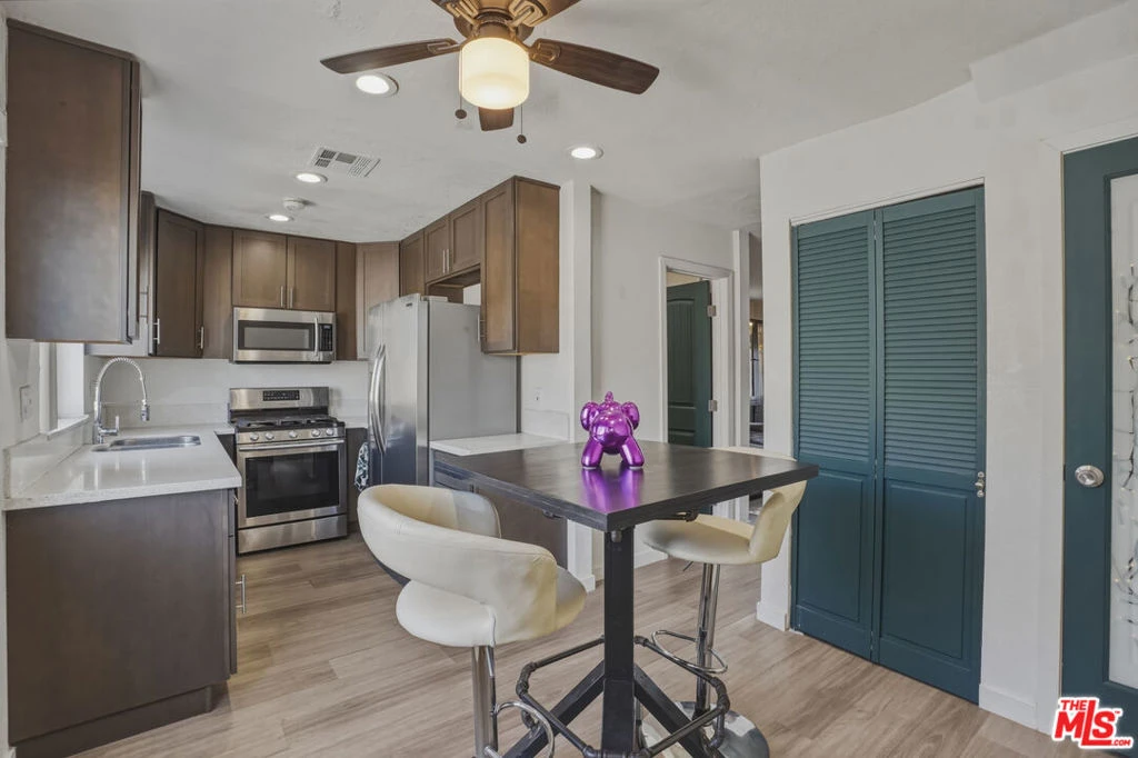 Beautifully renovated in 2019, this inviting townhouse-style end-unit boasts an open and functional layout for modern living. The main living area offers an ideal space for relaxing or entertaining guests, with natural light streaming in to create a warm and inviting atmosphere. The kitchen is thoughtfully designed with stainless steel appliances and quartz countertops, making meal prep a breeze. The adjacent dining area is ideal for sharing meals with friends and family. Upstairs, the bedrooms offer privacy and comfort, with vaulted ceilings and ample closet space. One of the bedrooms also offers a a private balcony to enjoy sunshine and fresh air. In-unit washer and dryer, wide plank laminate flooring, and generously sized linen and pantry closets complete the upscale contemporary design. Additional highlights include a private, two-car garage with room for storage, tankless hot water heater, and low HOA dues. Located just minutes from major freeways, Silicon Beach and SOFi Stadium, this residence offers the ideal blend of convenience and low-maintenance living.