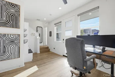 MOTIVATED SELLERS!!! 2 BEDROOM + OFFICE FLEX SPACE in a prime location!!! Located within Irvine’s Great Park community, this contemporary three-level home offers a flexible layout and a clean, modern aesthetic throughout. Updated flooring spans all levels and outdoor space, creating a cohesive and polished feel. Part of the new desirable Mulberry Collection in Solis Park, the property is only steps away from Portola High school and Solis K-8 school. The first level features a versatile entry-level flex space ideal for a home office, den, or bonus room, along with access to a patio. This level also includes a dedicated storage room and a side-by-side two-car garage with additional storage and an EV charger. The second level serves as the main living area, featuring an open-concept kitchen, dining, and living space enhanced by recessed lighting and updated flooring. The kitchen is finished with white shaker cabinetry, stone countertops, and a large island. A balcony extends the living space outdoors, and a convenient powder bathroom completes this level. On the third floor are two bedrooms, each with its own ensuite upgraded bathroom. One bedroom includes a walk-in closet, while the primary suite features a spacious walk-in closet, dual-sink vanity, updated finishes, and access to a private balcony. The double stack laundry is conveniently located on the same floor as the bedrooms. Located in the heart of Orange County Great Park with acess to resort-style amentites including parks. Residents enjoy pools, fitness center, tennis and basketball courts, clubrooms and BBQ areas. Minutes to Woodbury Town Center, Irvine Spectrum, major freeways, Kaiser Permanente and John Wayne airport. Zoned for award winning Irvine Unified School District. This property also includes paid off Solar!