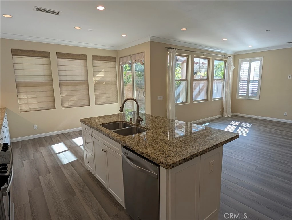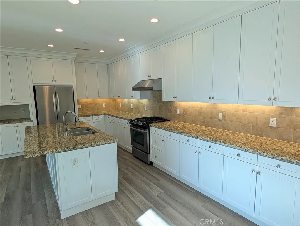 Experience modern sophistication in this highly upgraded and meticulously maintained 3 bedroom, 2.5 bath Cambria Residence 3, ideally situated in the highly desirable Stonegate Village. Bathed in natural sunlight through oversized windows, this stunning home has been refreshed with new, sleek grey wide-plank vinyl flooring throughout both levels and a sophisticated coat of custom paint, creating an instantly warm, light, and bright environment. Prepare culinary masterpieces in the chef-inspired kitchen, featuring abundant white Shaker-style cabinetry with under electronic lighting, exquisite granite countertops and a large center island, a full mosaic travertine backsplash, and high-end stainless steel appliances including a double-door refrigerator and powerful gas range. The seamless open-plan flow leads to a stylized contemporary paver patio, perfect for effortless indoor-outdoor living and entertaining. The upper level continues with the new vinyl flooring and features a primary suite retreat, pampered by a luxury bathroom with white cabinetry, double vanity sinks, and polished nickel fixtures. Additional highlights include a convenient upper-level laundry room with stacked Whirlpool appliances and whole-house internet connectivity. Zoned for the National Blue Ribbon award-winning Stonegate Elementary, this masterful residence is just moments from Egret Park, top-tier restaurants, and premier shopping. This is a turnkey opportunity in a premier Irvine location.