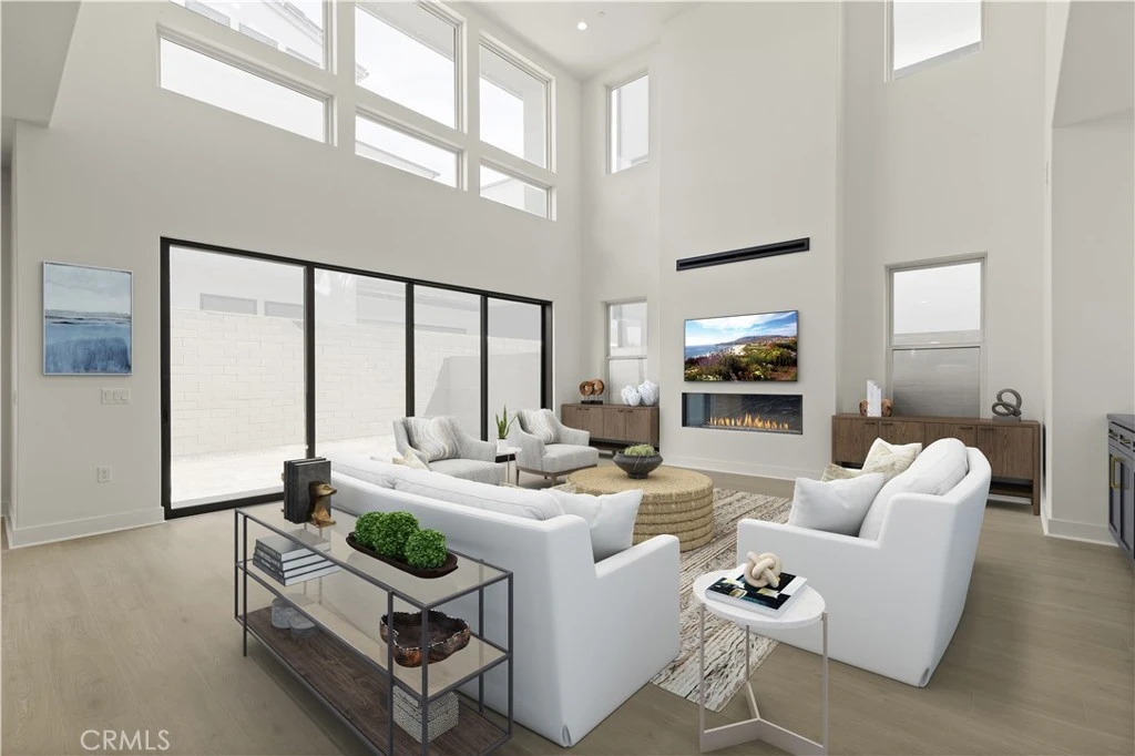 Welcome to Elevate, a luxurious Toll Brothers new community in Great Park Neighborhoods, Irvine, ideally located within walking distance to Cadence Park School (K-8) and Portola High School, and adjacent to the new Great Park Framework with trails, lakes, a museum, and more. Easy access to freeways and shopping. Homesite 42 is a new construction home that is situated on a cul-de-sac, west facing, 4,548 sq ft lot, and walking distance to all that Great Park neighborhood has to offer including 7 thoughtfully designed parks, 6 resort-style pools, walking and bike trails, and community gardens. This stunning Melina floorplan features 6 bedrooms, with 5 bathrooms, and is 3,892sq. ft, with a 2-car garage. Upon entering the home, a bright and welcoming foyer leads to an open-concept great room and kitchen, showcasing extended, Oregon Pine cabinets, large island, upgraded quartz counters and full backsplash. The great room features 20' vaulted ceilings, open concept dining, and entry to your private backyard through a multi-slide stackable glass door, great for entertaining. The second level primary bedroom features in-suite bathroom with freestanding tub and large glass shower with porcelain tile walls. Highlights of the home include a gourmet kitchen with WOLF appliances, a Sub-Zero refrigerator, and designer-selected finishes throughout including no carpet! This innovative floor plan design features two stories living plus a 3rd-floor bonus loft with a deck, 2 large bedrooms, and full bath—perfect for entertaining or a private retreat. Solar System included- purchased. Homesite 42, is move in ready now. Interior Photos provided are of the model home. Don't miss this opportunity!