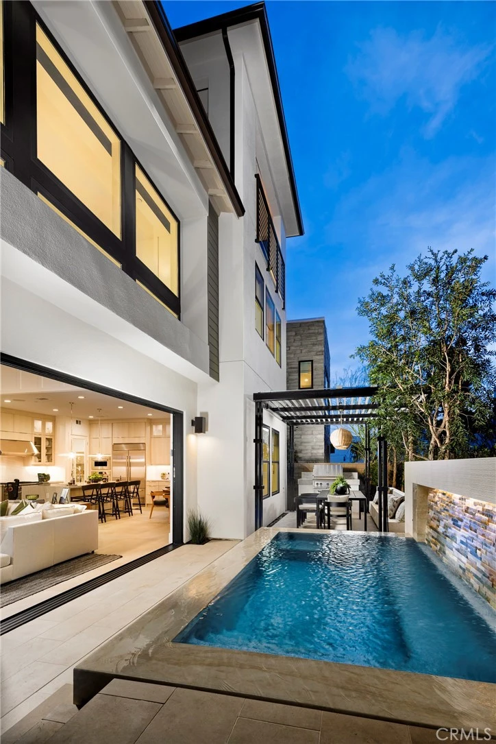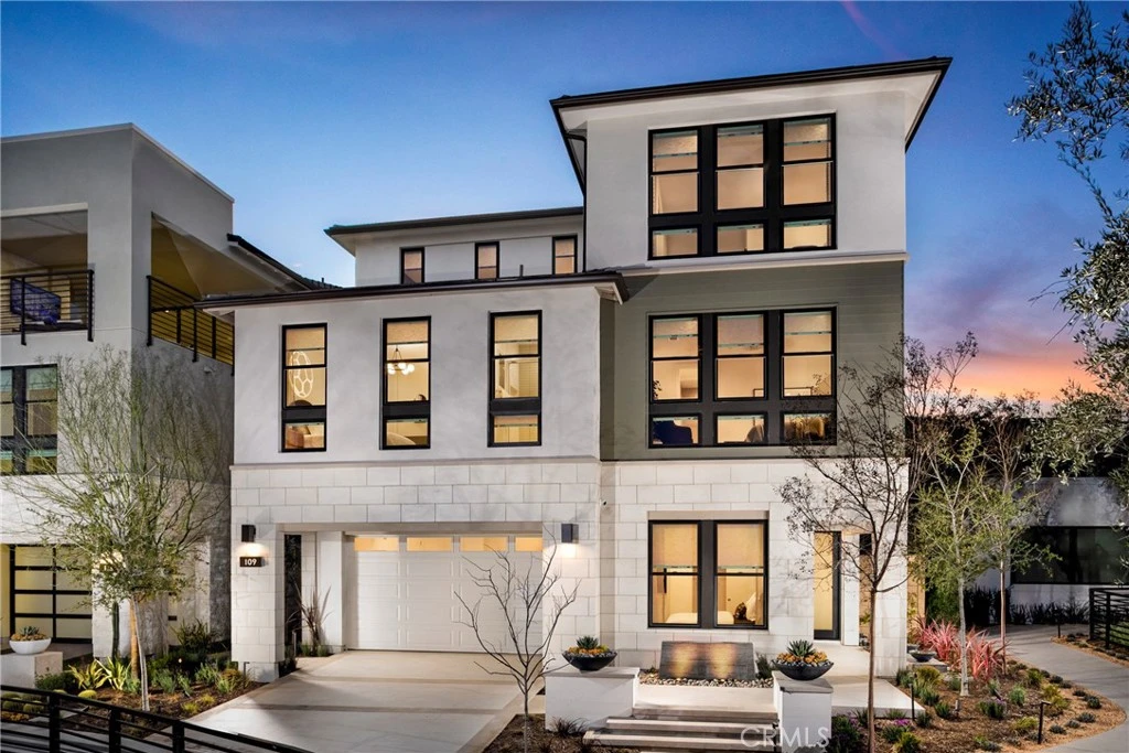 Welcome to Elevate, a luxurious Toll Brothers new community in Great Park Neighborhoods, Irvine, ideally located within walking distance to Cadence Park School (K-8) and Portola High School, and adjacent to the new Great Park Framework with trails, lakes, a museum, and more. Easy access to freeways and shopping. Homesite 1 is a new construction home that is situated on a PREMIUM, 4,814 sq ft corner lot, and walking distance to all that Great Park neighborhood has to offer including 7 thoughtfully designed parks, 6 resort-style pools, walking and bike trails, and community gardens. This stunning Avelina floorplan features 5 bedrooms, with 5 bathrooms, and is 3,411sq. ft, with a 2-car garage. Upon entering the home, a bright and welcoming 27' foyer leads to an open-concept great room and kitchen, showcasing smooth white cabinets, quartz counters and full backsplash for a classic look. The great room features vaulted ceilings, open concept dining, luxury gas fireplace, and entry to your private backyard through a multi-slide stackable glass door, great for entertaining. No neighbors behind or next to you makes this a privacy dream. The second level primary bedroom features in-suite bathroom with freestanding tub and large glass shower. Highlights of the home include the gourmet kitchen with WOLF appliances, a Sub-Zero refrigerator, and designer-selected finishes throughout. This innovative floor plan design features two stories living plus a 3rd-floor bonus loft with a deck, large bedroom, and full bath—perfect for entertaining or a private retreat. Solar System included- purchased. Homesite 1 is move-in ready NOW. Interior Photos provided are of the model home. Don't miss your chance to own this premium homesite location.