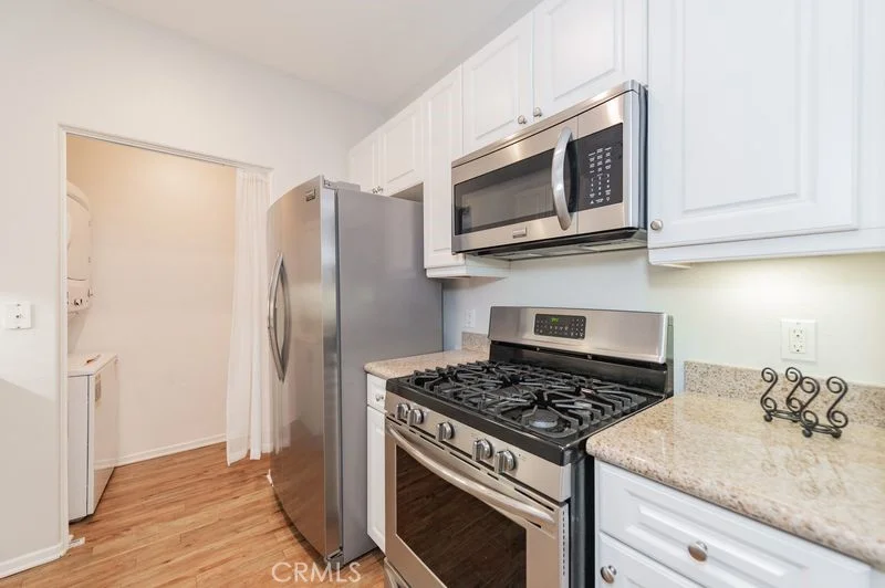 This very well maintained Astor Court unit is located on the second floor. The kitchen boasts an upgraded gourmet package of all stainless steel appliances including a five burner gas stove, a side by side refrigerator, and a very quiet dishwasher. Many new items in this unit: energy saving hot water heater installed 2024, stackable W/D purchased in 2023, and an elongated water-saving toilet 2022. Bedroom has a roomy walk-in closet and a real wood window shutter to block out the light when needed. A spacious balcony looks out to the beautiful courtyard. Assigned parking space #230 is very conveniently close to the unit. Watermarke Pl. offers three swimming pools, four spas, gym, movie theater, tennis court, and basketball court. It is across street from the San Joaquin Wildlife Sanctuary with many hiking trails. Minutes from Newport beach, UCI, JW Airport, shopping mall, restaurants, hwy 405, 73, and 55.