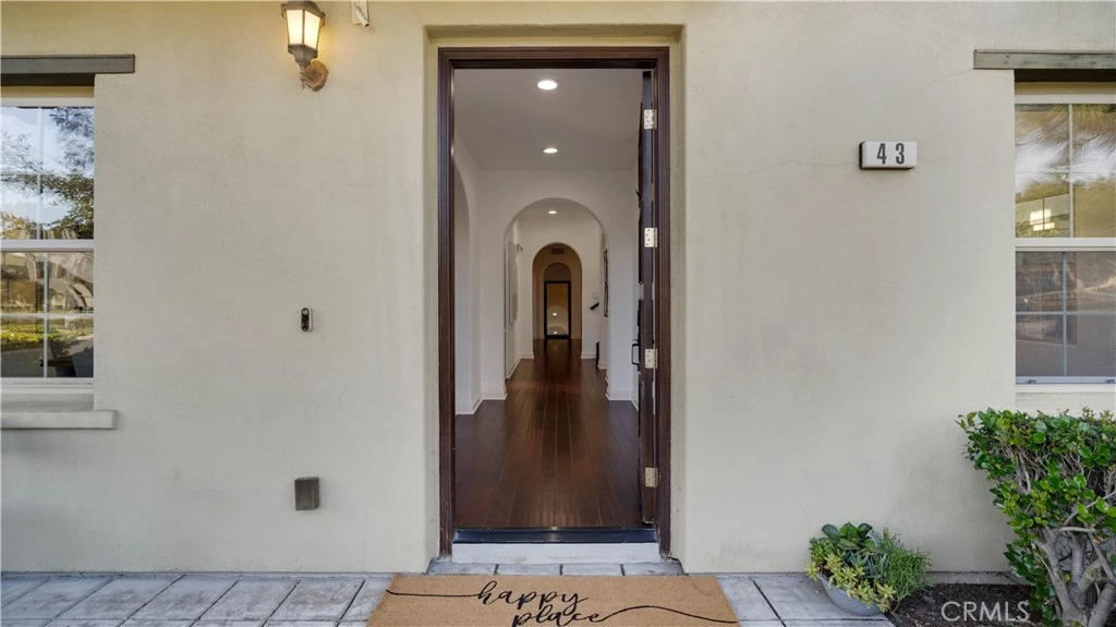 Welcome to 43 Conservancy, a refined and inviting residence that blends modern Spanish architecture with timeless elegance and everyday comfort. Filled with natural light and thoughtfully designed throughout, this detached home offers warmth, charm, and understated luxury from the moment you arrive. The main level unfolds with intention, beginning with a gracious living room and formal dining space ideal for hosting and entertaining. A private courtyard tucked just off the hall creates a serene indoor-outdoor retreat—perfect for a quiet pause or morning reflection. Toward the rear of the home, the refreshed kitchen and cozy family room, anchored by a fireplace, invite relaxed evenings and meaningful gatherings. The kitchen has been tastefully updated with white shaker cabinetry and quartz countertops, and is equipped with premium appliances including a Bertazzoni cooktop with high-BTU brass burners and Samsung WiFi-enabled stainless steel appliances. A French door opens to a quiet, private backyard designed for effortless outdoor living, while a salt-free water softener adds everyday comfort. Thoughtful modern upgrades enhance the home, including Google Nest smart lock, video doorbell, thermostats, floodlight cameras, and smoke alarms, along with touchless Legrand Adorne Wave switches, upgraded LED recessed lighting, Toto toilets, and Delta faucets. Energy efficiency is elevated with 24 high-production Qcells solar panels, plus a 220V EV-ready outlet in the garage. Upstairs, all bedrooms are thoughtfully arranged alongside a convenient laundry room. The primary suite is a peaceful sanctuary featuring a spa-inspired bath with tiled walk-in shower, soaking tub, and an upgraded walk-in closet. One secondary bedroom includes an en suite bath, while two additional bedrooms—one with a spacious balcony and another with a charming Juliet balcony—offer flexibility for modern living. Residents of Portola Springs enjoy resort-style amenities including Olympic and Junior Olympic pools, parks, trails, sports courts, tennis, and beach volleyball. Ideally located near Woodbury Town Center, Irvine Spectrum, Laguna Beach, and John Wayne Airport, 43 Conservancy is more than a home—it is the backdrop for your next chapter and a true expression of elevated Irvine living.