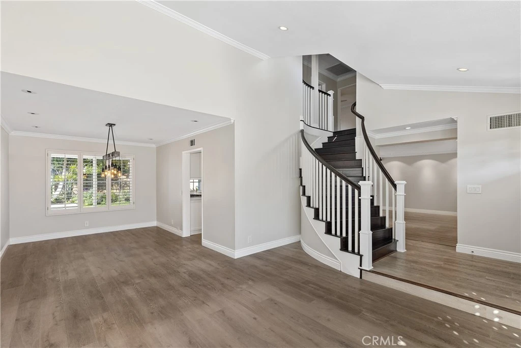 On the hunt for a peaceful retreat where you can enjoy idyllic indoor-outdoor living? Look no further than this spectacular Irvine rental set on a 5,400-sq cul-de-sac lot! This delightful abode features 4 bedrooms, 3.5 baths, and multiple gathering areas. Inside, you’ll find a freshly painted 2,427-sq ft interior accentuated by detailed molding, chic lighting, and a fusion of luxury vinyl plank and dark hardwood flooring. Plantation-shuttered windows and a 5-panel glass slider usher in natural light while connecting seamlessly to the sun-kissed outdoors. Towering palms add seclusion as you relax in the PebbleTec pool and spa. Treat yourself to the kitchen’s stainless steel appliances, double ovens, and exquisite quartz countertops. All bedrooms are on the upper level, including the primary and secondary suites. Additionally, there’s an attached 2-car garage with an EV charging station, built in cabinets, and epoxy flooring. It's fantastic location is in the highly acclaimed Irvine School District near Northwood High School. Plus, shopping, parks, and freeways are easily accessible. Come take a tour while it’s still available!