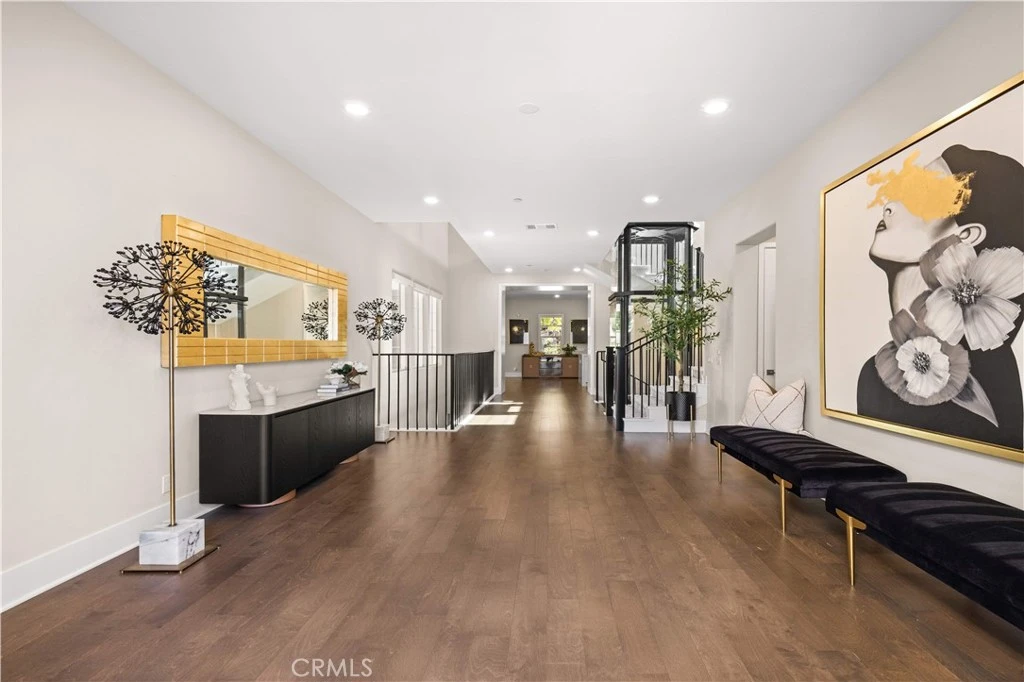 Located in the prestigious guard-gated Altair community of Irvine, this luxury estate offers resort-style living, top-rated schools, and exceptional privacy. Welcome to Lumiere Residence Plan 4X, an extraordinary modern estate offering approximately 6,860 square feet of living space with 5 bedrooms and 7 bathrooms, including a private mother-in-law suite with its own kitchenette. The home features a grand open floor plan with a spacious great room and gourmet kitchen equipped with top-of-the-line stainless steel appliances, soft-close white cabinetry, and an enormous quartz center island. The open-concept living area seamlessly connects the kitchen, dining area, and living room into one large entertaining space. Large sliding glass doors open to a covered outdoor patio, perfect for indoor-outdoor living and entertaining. Upstairs features a luxurious primary suite with a spa-like bathroom and large walk-in closet, along with a huge second-floor deck featuring a fireplace. This rare floor plan also includes a basement level with a lounge, wet bar, bedrooms, study room, entertainment room, and a private courtyard. The home includes over $500,000 in interior and exterior upgrades, including a modern luxury Savaria Vuelift round glass elevator, second kitchen, Hunter Douglas PowerView motorized window treatments, custom landscaping with outdoor kitchen, large waterfall fountain, fire pit seating area, crown molding, baseboards, hardwood flooring, and recessed lighting throughout. This rare luxury home with basement and NextGen suite with private gate access offers an exceptional opportunity to experience luxury living in one of Irvine’s most exclusive communitiesResidents of Altair enjoy world-class community amenities including a clubhouse, 3 pools, 3 Spa, BBQ Area, Tennis Courts, Pickball Field, Trails and Parks. Stop Searching... Altair Irvine- A Luxury Living Awaits You!