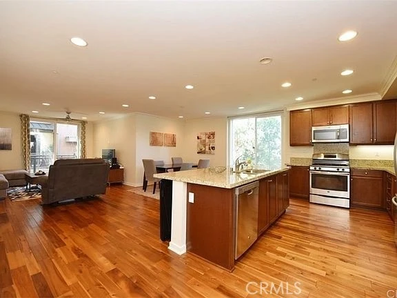 Modern Residence 3B corner end unit with open views and steps from a greenbelt, offering approximately 1,823 square feet of living space with 2 dual primary bedrooms, flex space, 2.5 bathrooms, 1 deck, and a private 2-bay tandem garage with direct access. This unfurnished home features brand new vinyl flooring throughout, fresh interior updates, custom paint, crown molding, and updated bathrooms with glass shower doors. The kitchen and bathrooms offer clean, modern finishes, and the home also includes an in-unit laundry area. Residents enjoy access to the 8,000-square-foot Clubhouse and Recreation Center with resort-style amenities including a Jr. Olympic saline pool, two outdoor spas, barbecue pavilion, fitness center, outdoor half-court basketball, and more, all within the highly desirable Central Park West community in Orange County.