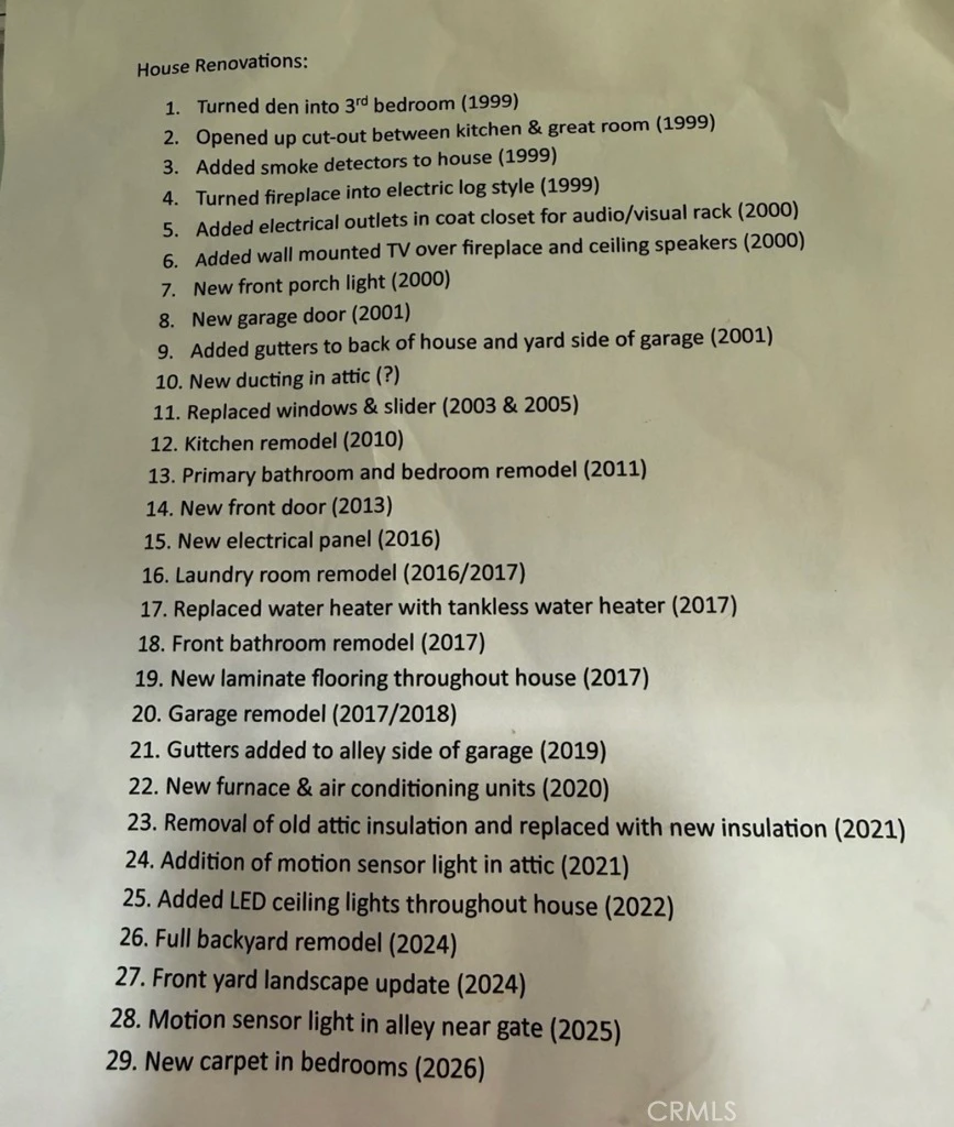 This thoughtfully upgraded single level home has been beautifully enhanced over the years with quality improvements throughout. Originally expanded to include a third bedroom, the layout was opened between the kitchen and great room to create a seamless, inviting space perfect for everyday living and entertaining. Each bedroom, as well as the great room, boasts lake views. The kitchen has been fully remodeled, along with the primary bedroom and bathroom, an additional full bathroom, and the laundry room—offering modern comfort and style in every corner. The fireplace was converted to a gas log style, and the home features added ceiling speakers, a wall-mounted TV setup, and dedicated electrical for audio/visual equipment. Major system upgrades include a newer electrical panel, tankless water heater, updated furnace and air conditioning units, new attic ducting, and replaced attic insulation. Windows and the sliding door have been updated, and LED ceiling lights have been installed throughout the home for a bright, energy-efficient feel. Additional enhancements include updated laminate flooring throughout the main living areas, new carpet in the bedrooms, a remodeled garage, a new garage door, a new front door, and exterior gutters. The exterior shines with a full backyard remodel complete with landscaping, irrigation and lighting, refreshed front yard landscaping, updated lighting including motion sensor lights, and great curb appeal from the welcoming front porch. This home blends modern upgrades with thoughtful functionality, offering comfort, efficiency, and move-in-ready appeal inside and out. Residents enjoy resort-style living in the highly desirable Woodbridge community of Irvine, featuring two scenic lakes with beach clubs, lagoons, boating, fishing, and miles of walking and biking trails. Amenities include 22 swimming pools, numerous spas and children’s wading pools, tennis and new pickleball courts, parks, playgrounds, and picnic areas throughout the neighborhood. Convenient access to Woodbridge Village Center shopping, freeways, John Wayne Airport, the premier Irvine Spectrum Center, coastal communities including Laguna Beach, Newport Beach and Huntington Beach, dining, and entertainment, along with award-winning Irvine Unified schools and a strong sense of community with year-round events and activities.