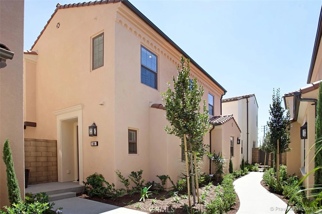 This contemporary detached townhouse in Cypress Village, Irvine, exemplifies modern luxury with its Plan One layout in Jade Court. The entry, kitchen, bathrooms, and laundry area feature elegant ceramic tile, while plush designer carpeting enhances the living spaces. Energy-efficient dual-glazed low-E glass vinyl windows ensure comfort and sustainability. The lifestyle kitchen is equipped with Bosch stainless steel appliances, sleek satin finish white Thermafoil cabinets with shaker-style doors, designer knobs, under-cabinet lighting, and a granite countertop complemented by a stainless steel double basin sink. The master suite boasts a spacious walk-in closet, and the master bath is designed with dual under-mount sinks, a cultured marble countertop, and stylish polished chrome faucets. Enhanced structured wiring supports high-speed internet and multimedia outlets throughout the home, including in all bedrooms. Additional features include a dedicated area for a gas washer/dryer, a tankless water heater, and a sprinkler system. Abundant natural light fills the space, and residents can enjoy nearby ball fields, sports courts, a swimming pool, and parks, with a Montessori school conveniently located nearby. The 5 Freeway is just around the corner, and a floor plan is available in the supplement, with a virtual tour accessible via the map frame.