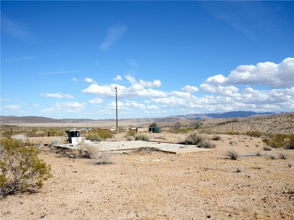 (APN: 0606-271-05-0000) As you approach the parcel over a small hill, you’ll immediately notice one of its best features — the natural rise creates an added sense of privacy, almost like a quiet barrier separating the property from the outside world. If you've been looking for the perfect secluded Joshua Tree property to bring your desert dreams to life, you've found it here with this lovely 5 acre parcel in the Sunfair West area. This beautiful lot is hugged by 3 BLM parcels, adding even more privacy and open desert surroundings to enjoy. You'll be thrilled to know that utilities appear to be available nearby, including two power poles along the south boundary of the property, meaning this lot may be ready for your future plans to begin (buyer to verify all utilities and land use). From what appears to be remnants of a possible old homestead cabin, there is also an existing concrete slab on the property (buyer to verify intended use and condition). The parcel is surrounded by rugged scenery, the property offers panoramic views of the Morongo Basin — a stunning backdrop for your future dream home. You might think all this seclusion comes at the cost of convenience, but luckily this beauty is located just 10 minutes from the amenities of Joshua Tree Village, with the entrance to Joshua Tree National Park only a little farther down the road. Don’t miss out on this stellar opportunity — come see the property for yourself, walk the land, and let your imagination run wild with the possibilities.