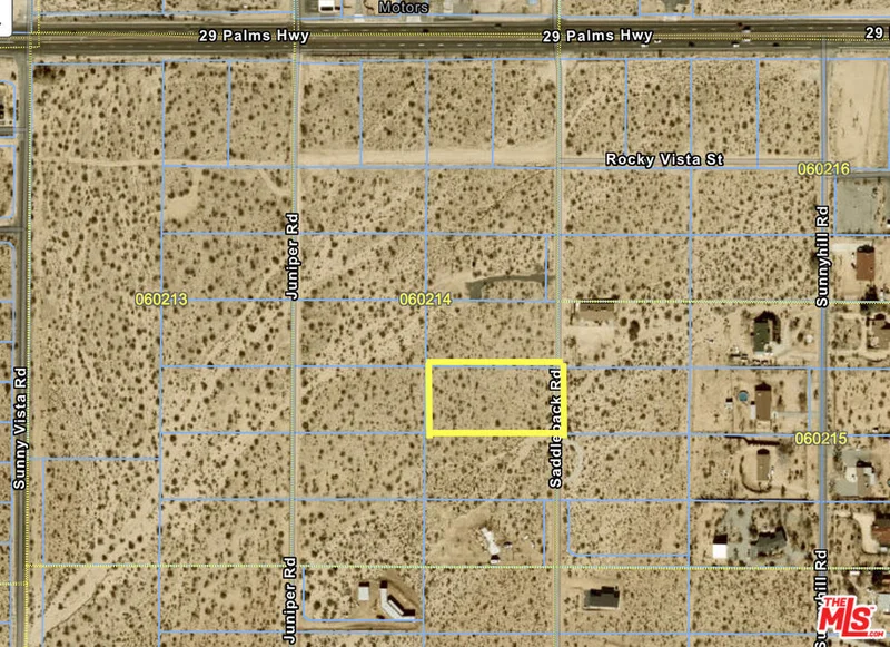 Gorgeous 1.25-acre parcel located on Saddleback Rd in the southern area of Joshua Tree. Just a short drive from the Park Entrance, this property boasts lovely elevation and stunning vistas. Zoned RS1. Electricity and water infrastructure are readily available at the corner lot, making it an ideal location for constructing a designer home and compound. Positioned above JT Village, the slight incline offers panoramic views of Mt. Bartlette, Bunker Mtn, Copper Mtn, and the Boulder Studded Little San Bernardino Mountains, with glimpses of snow-capped Mt. San Gorgonio. Witness awe-inspiring sunsets and the twinkle of city lights from this vantage point. The area boasts a diverse array of desert flora including Joshua Trees, cholla cacti, and creosote bushes. Situated approximately one mile from the JT Strip, residents can enjoy easy access to organic cafes, saloons, restaurants, boutiques, and the farmers market. Buyer to verify all zoning and utilities.