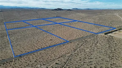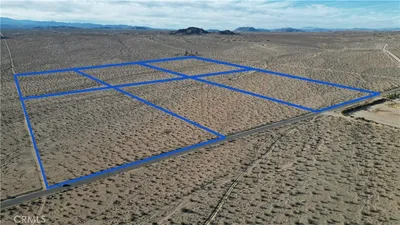 Embrace the boundless potential of these exceptional desert parcels! Whether you are envisioning a personal sanctuary or a development project, seize the opportunity to secure 1, 2, 3, 4, or all 5 of these contiguous lots, totaling an impressive 91 acres (each separately listed). Nestled amidst the breathtaking natural landscape, this expansive canvas offers the perfect setting for your dream desert compound or community. Picturesque open-sky sunrise to sunset vistas, sweeping sandy panoramas, and majestic rugged mountains set the stage for a truly captivating living experience. Adventure awaits with endless opportunities for wilderness exploration. Embark on thrilling hikes, traverse off-road trails, immerse yourself in the vibrant hues of wildflower blooms, or lose yourself in the mesmerizing spectacle of stargazing beneath the pristine dark skies. Conveniently located adjacent to Joshua Tree Lake RV and Campground, home of the renowned Joshua Tree Music Festival (voted #1 Best Music Festival in USA TODAY Readers Choice for 2024!) and a mere 14 miles from the iconic Joshua Tree National Park, this rural haven strikes the perfect balance between seclusion and accessibility. Enjoy the tranquility of your private oasis while still being within easy reach of the eclectic charm of downtown Joshua Tree, the electrifying energy of Indio's renowned festivals such as Coachella and Stagecoach, or the cosmopolitan dining scene of Palm Springs. Explore the possibilities with the County regarding potential development opportunities, whether it's building multiple units or subdividing to meet the demand for sought-after housing. Seize this extraordinary chance to unlock the limitless potential of these remarkable properties and embark on a journey where the only limit is your imagination. Your desert paradise awaits!