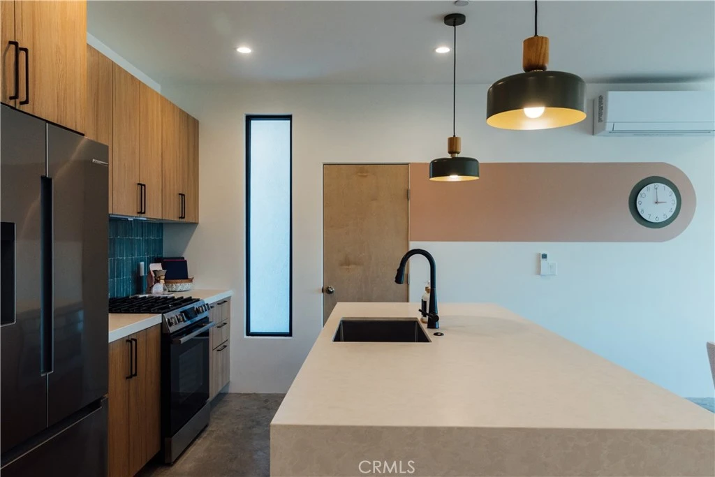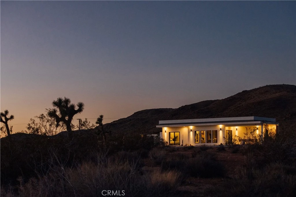 The desert is calling: Clean lines, open space, and effortless indoor-outdoor living come together in this 1,341 sqft, 3-bedroom, 2-bath, offering retreat-like experiences. The light-filled living room opens through sliding glass doors to the covered patio, framing sweeping desert vistas and georgeous Bartlett mountain views, and create a seamless connection to the outdoors. The kitchen is thoughtfully designed with stainless Bosch appliances, quartz countertops, and with ample storage provided by cabinetry and pantry. Two guest bedrooms each feature sliding glass doors – one with direct access to semi-private patio and outdoor shower – the other offering quick access to the fire pit. A guest bath includes a walk-in shower with entrance via glass door to a secluded, block-walled courtyard and soaking tub. The primary suite boasts a private full bath and its own sliding doors leading to the patio and its own outdoor shower. Ceiling fans found throughout, high-speed Starlink internet access, and a centrally located laundry closet with stackable washer/dryer, add comfort and convenience. Outside, the 453 sq. ft. covered patio is made for relaxing and entertaining, allowing friends and family to come together for memorable meals under the stars. The built-in fire pit with seating, hammocks, cedar barrel sauna, and hot tub, give further opportunity for fun and relaxation. The grounds are beautifully landscaped with cacti, agave, and other desert-friendly plantings complement the natural surroundings. Located just minutes from Joshua Tree National Park and the shops and restaurants of downtown Joshua Tree – and a short drive to Pappy & Harriet's Pioneertown Palace or Integratron – this home offers ease of access, views, and versatility, feeling remote, yet close to it all. Offered fully-furnished and turnkey, ideal for full-time living, weekend escapes, or as an investment in Joshua Tree’s strong short-term rental market, this home wont last long… reach out to your agent and schedule a tour today!