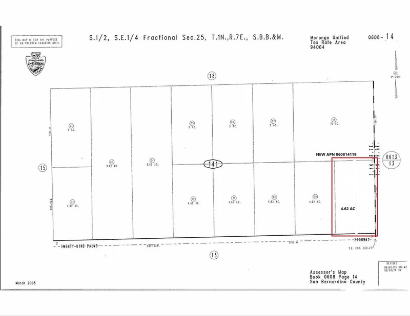 Discover an extraordinary opportunity with this remarkable 4.64-acre lot in Joshua Tree, boasting an impressive 330 feet of frontage along the iconic 29 Palms Highway. This rectangular parcel, measuring approximately 330 by 613 feet, is strategically positioned on the northern side of 29 Palms Highway at the intersection with Lee Road. As the first parcel encountered when entering Joshua Tree from the east, or the last when traveling west, it serves as a prime gateway to this enchanting area. Lee Road acts as the boundary between Joshua Tree and 29 Palms, enhancing its accessibility. Conveniently situated midway between the western and eastern entrances to Joshua Tree National Park, this lot offers unparalleled potential. With unobstructed vistas of the majestic mountains of Joshua Tree National Park to the south—including Queen Mountain, Quail Peak, and Eureka Peak—as well as Copper Mountain to the north, the possibilities for development are limited only by your imagination. Power lines run along 29 Palms Highway, and water services may also be available in the vicinity. This parcel falls within the jurisdiction of the Joshua Basin Water District, ensuring essential utilities are within reach. **Street number has not been assigned. Numbercial reference is part of the APN**