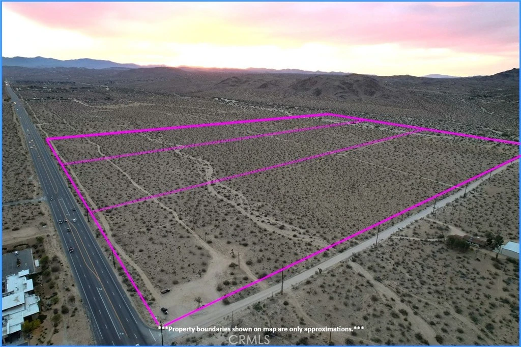 PRICE REDUCTION - Approx 0.37 Miles of Hwy Frontage, 3 Parcels, combined 119.21 Acres (APN: 0601-231-11, 0601-231-14, 0601-231-15) GPS: 34.135198, -116.33493 These properties are located in Joshua Tree, CA. San Bernardino County has zoned this property both Joshua Tree/Rural Living (JT/RL) and Joshua Tree Multiple Residential (JT/RM). There is approx 90 acres of RL zoning, this zoning can be subdivided into 1 until per 2.5 acres. There is approx 30 acres of RM zoning, which allows for approx 20 units per acre. The property has both a 115 KV power line along the highway and also along Sunny Vista Rd. There is also a residential electricity line on the property running on site (parallel to the highway approx 240 ft north of the 115 KV line). The Joshua Basin Water District services the area and has a water line across the street, along Sunny Vista Rd. Residents have septic tanks for their sewer needs. The properties have a blue line running parallel to the highway with a small portion of DWR Awareness area on parcel 0601-231-11, and a portion of the northern parcels in the 500 year floodplain. These properties are only a mile west of downtown Joshua Tree, a 10 minute drive away from the Joshua Tree National Park entrance and 27 minutes from 29 Palms Marine Corp Base. Pioneertown is also only a 16 minute drive. Living in Joshua Tree, CA, offers a unique blend of natural beauty and laid-back desert living. Imagine building your desert getaway and waking up to bright desert sunrises, panoramic views of rugged mountains, or dark starry nights. Endless opportunities for outdoor adventures are a short drive away in Joshua Tree National Park. There's always something exciting to explore. Plus, the tight-knit community fosters a sense of belonging, with local shops, art galleries, and events showcasing the area's vibrant culture. Whether you're seeking tranquility or adventure, Joshua Tree welcomes you with open arms. This property does not yet have an address. While the boundary lines on the map offer a glimpse, they are only approximate. A Buyer should verify boundaries, zoning and utilities, ensuring every aspect aligns with their vision for the property.