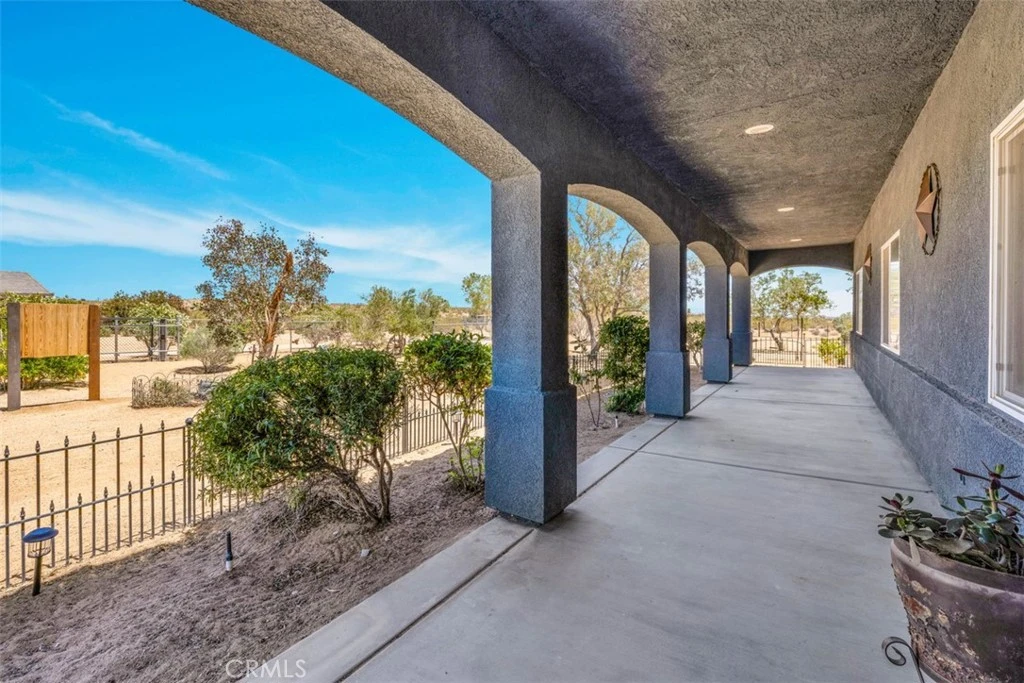 Price Correction Alert-This beautifully updated 3-bedroom, 2-bath equestrian estate is a rare find in Joshua Tree, offering both modern comfort and high-desert charm. Situated on 2.01 acres of fully improved horse property, this 2007-built home features fresh interior and exterior paint and a new mini-split system for energy-efficient cooling. Inside, enjoy an open floor plan with a cozy living room and fireplace, a spacious kitchen with granite tile countertops, a breakfast bar, and a pantry—plus direct patio access from both the living room and the primary suite. Step outside to a large covered back patio, ideal for stargazing, outdoor dining, or entertaining at the custom barbecue area. The backyard includes a hobby shed with electricity, a garden shed, a fountain, and mature fruit and nut trees—fig, nectarine, pomegranate, almond, apple, and pistachio. For horse enthusiasts, the property is equipped with four covered stalls (24' x 24'), a 60-foot round pen with additional covered stall (90' without), a 175’ x 200’ working arena, water trough, two tie bars for saddling, a tack shed, and a feed storage area that can be converted into an additional stall. Located in a peaceful area near miles of riding trails and just 25 minutes from Joshua Tree National Park, this property blends equestrian luxury with versatile desert living. And here’s the best part—if horses aren’t your thing, the seller will remove all stalls and equipment by close of escrow, leaving a wide-open property with endless potential. Don’t miss this opportunity to own a versatile Joshua Tree property with acreage at a newly reduced price—perfect as a primary residence, vacation retreat, or investment property.