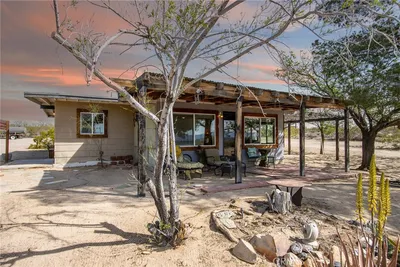 BEST LOCATION/PRICE presently in Joshua Tree: Near End-of-Road atop a hill, overlooking Copper Mountain Mesa and National Park ridgelines to the south. Views of SoCal’s two highest mountains - San Jacinto & snowcapped San Gorgonio. Arguably one of the finest locations in Joshua Tree for those seeking remote solitude for well under $300k. Nearly 5-ACRES of supreme beauty, spread over 2-parcels, providing future investment possibilities. Two parcels allow for 2 Primary Homes (SFRs) and 2 Guesthouses (ADUs) – as a result, Buyer could build three additional structures a total of 4 permitted structures to live in (buyer to investigate w County). Current home includes new dual-pane windows, new water heater, new refrigerator, new ceiling fans and a new insulation/dry-wall in ceiling of main room for heating/cooling efficiency. Mature landscaping and shade trees. Ductless mini-split AC/Heating. Container included for extra storage space. For those looking for their desert dream getaway, look no further. Note, Green lines demarcating parcel borders are approximate and not the result of a survey. Directions – DO NOT USE GPS or Google maps – instead, follow these directions: Go north on Border Ave, right (east) on Winters Rd, the left (north) on Mt Nebo Rd. Home located at top of hill on the right. Or find via APN: 0632-322-24