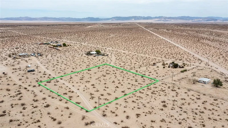 Fantastic 2.5-acres in an elevated location near the southern edge of Copper Mountain Mesa with views of the dry lake bed below and the ridgeline of the National Park in the distance. Wilderness in every direction, with lightly populated area. Approximately 1 mile from paved road. Electricity available; buyer to call water district to investigate water costs. Green lines demarcating boundaries are approximate; street address is not official – do not use to GPS to property. Locate with APN: 0632-272-40