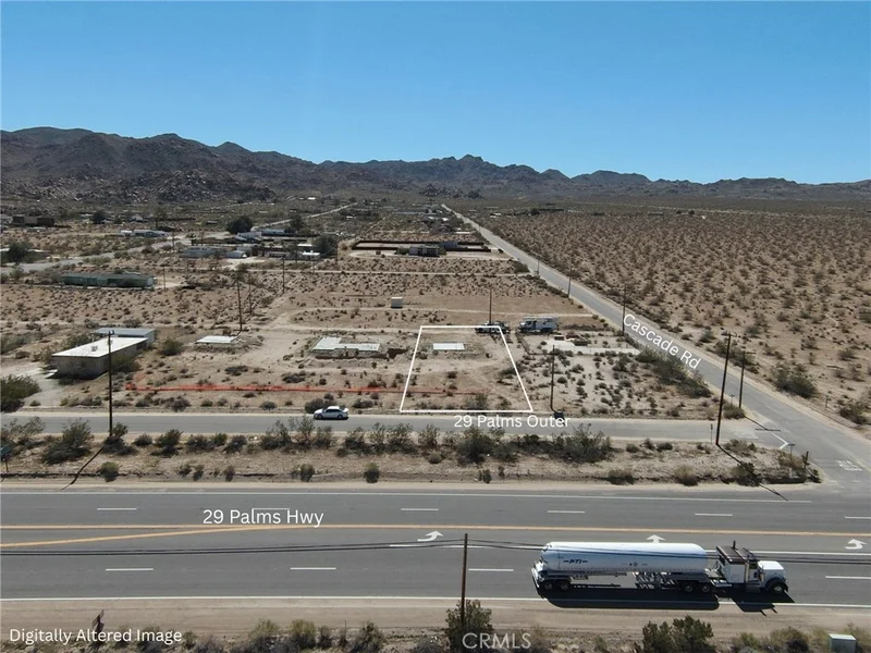 Opportunity meets location with this approximately 16,000 square foot parcel located in the growing Panorama Heights area of Joshua Tree. The property features an existing concrete pad measuring approximately 20' x 23', providing a potential foundation for future improvements or creative desert development. Fronting 29 Palms Outer Highway, the lot offers convenient access while still sitting within a section of Joshua Tree that continues to see steady new construction and investment. City water appears to be available in the street, and power poles are located directly behind the parcel, creating promising conditions for those considering future building plans. The current owner previously moved forward with plans to develop the property and had permits approved at one point, but due to delays experienced during the COVID timeframe those permits eventually expired. Buyers are advised to verify any historical approvals or project information through San Bernardino County during their due diligence process. Buyer to verify zoning, utility availability, and development potential. Lot lines depicted in photos are approximate.