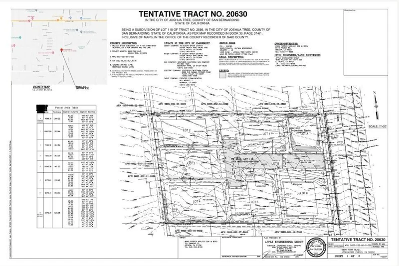 Tentative tract map vacant land subdivision planned with reports included. Ideal for a contractor to build out 6 infill homes - with homes already developed on all sides. Soaring vistas and central location right on Park Blvd. Park Blvd is the main thoroughfare to the Joshua Tree National Park. Joshua Tree has become a internationally known zip code with more million dollar homes being sold than ever before. Designer new constrictions a modern revival remodels can be seen throughout the area. The area is established for solid investment. JT has become a trendy enclave for Hollywood celebrities, artist's, musicians and more. The Joshua Tree National Monument sees about 3 million tourists annually. Not far from the 29 Palms Marine Base, Copper Mtn College, and the Hi-Desert Medical Center. New businesses, new hotels, new bars, new grocery stores have sprung up in the area. Save time an money with a turn key subdivision in a prime location. The 45 minutes to Palm Springs. 2 hours and 15 minutes to Los Angeles. APN: 0603-032-06-0000 For all questions on building and uses contact the county planners. Address is legally assigned. Don't Wait - Call Now!