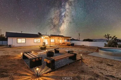 Welcome to 7795 Sunset a beautifully updated 4 bedroom, 2 bathroom home in one of Joshua Tree’s most desirable neighborhoods, just minutes from the National Park. This 1,796 square foot home offers an open concept layout with a modern kitchen featuring quartz countertops and a breakfast bar. Each bedroom is equipped with its own mini-split A/C unit for personalized comfort. The garage has been converted into a versatile game room, and the fully fenced backyard is designed for entertaining, complete with an above ground pool, hot tub, fire pit, and views of the mountains and desert landscape. A spacious laundry room and ample parking add to the homes convenience.