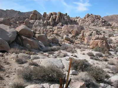 Parcel 0604-081-09, 5.08Acres; Parcel not to be accessed without owner’s presence & neighbors are not to be disturbed. World class parcel unique for custom organic architecture such as Couelle, or Lautner. Kellogg Hi-Desert House, located about 3 mi due East in similar terrain. Desert solitude, privacy, vistas, rock climbing with nearby suburban amenities. Shielded by 2 SFR parcels and 2 BLM parcels. Elec Pwr, & Water Utilities within 1-2 parcels of site. On site mountainous boulders (up to 30ft dia.) allows flexibility in custom structural design, & stone art sculpting. The parcel has about a 300ft vertical rise in elevation. Within 3/4 mile of Medical Emergency Room and Law Enforcement facilities. Same latitude as the Joshua Tree Natl Park, N Boundary, between Joshua Tree and 29 Palms entrances.