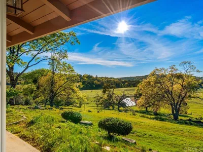 Set above rolling meadowlands, Oak Ridge Vista offers a rare blend of privacy, craftsmanship, and timeless backcountry beauty across approximately 10 oak-studded acres. Surrounded by majestic Engelmann and black oaks and framed by expansive pastoral views stretching into preserved ranchland, this thoughtfully designed estate captures the essence of refined rural living. The turnkey ~1,935 sq ft residence—featuring 2 bedrooms, 2 baths, and a dedicated home office or optional third bedroom—has been fully remodeled to create an open, light-filled interior where oak hardwood and tile flooring meet expansive windows, French sliding doors, and a warm, inviting fireplace. Refined finishes, maple cabinetry, and stainless-steel appliances complement the functional layout, while the spacious primary suite offers a private ensuite retreat. Outdoor living is equally compelling, with a covered porch providing shaded comfort and a separate sitting area perfectly positioned to take in sweeping sunset views. The grounds are enhanced by natural rock outcroppings and meticulously maintained landscaping, creating both visual impact and usable space. A 2-car attached garage is complemented by an impressive ~2,000 sq ft barn/workshop—accommodating up to six additional vehicles—with 200-amp service, a full bathroom, and unfinished attic space for future expansion. Well-appointed infrastructure includes a private well, 5,000-gallon holding tank, dual septic systems, full RV hookups, stubbed utilities for a future ADU, owned propane, a whole-house ozonator system, and a 22kW backup generator. Built with Hardie board siding, a concrete roof, and fire-resistant materials, and fully fenced with multiple potential building sites, this property offers a rare combination of durability, flexibility, and enduring natural beauty in one of Julian’s most desirable rural neighborhoods.