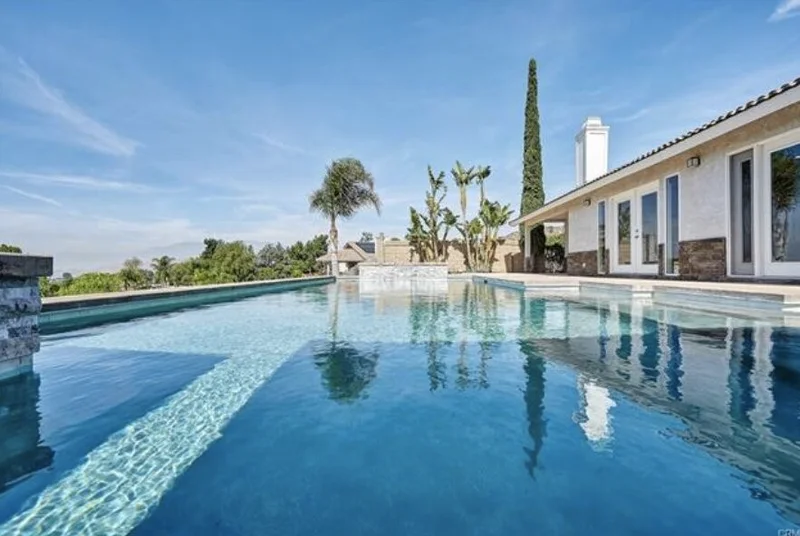 STUNNING ONE-OF-A-KIND EXECUTIVE-STYLE VIEW ESTATE. 3000SF SINGLE STORY 5 BEDROOM, 3 BATH, 3 Car Garage all remodeled Home on 1/2-acre lot nested in the highlands of Indian Hills! Imagine looking out to green rolling hills and valleys, even the twinkle of the night lights from the oversized pool and spa. Impressive views of the mountains and the city, breathtaking sunsets. This property is truly turn key and shows like a model home. Near Indian Hills Golf Club & Jurupa Hills Country Club. Dramatic courtyard entryway, vaulted ceilings, and natural light from the multiple windows. The modern open concept floor plan features an oversized gourmet kitchen that has been remodeled with decorative features which include large granite counters, newer antique white cabinetry as well as stainless steel appliances, a large peninsula with a lot of storage, and a professional-grade stove and wine cooler. House features a Family room, formal dining room, formal living room, large fireplace, foyer, master suite, 4 French doors, and lots of windows overlooking the pool and the stunning views. Whole house water filtration system, tile, laminate flooring, and LED lighting throughout the home. Bathrooms have been renovated with tile floor, new tub/showers, new plumbing fixtures, faucets; all dual-pane windows, modern window blinds, newer doors, central heating & air, separate laundry room with washer and dryer. The master bedroom has 2 separate closets and a fan. The backyard is an entertainer’s delight, with a large covered patio and a stunning rectangular 40-foot long pool with large steps, 3 waterfalls, an oversized SPA, and a booster jet pump. Walk down the steps into a secluded garden area with many trees, palm, fruit trees, and decorative rocks. This home is a must-see in person, the views are amazing, nothing like this available in Jurupa Valley currently. Near great schools, there are no HOA dues.