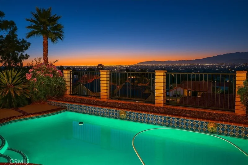 Stunning City, Mountain & Night Light Views – Heated Pool & Spa – Impeccably Maintained Introducing 7701 Longs Peak Drive, a meticulously cared-for two-story home in Jurupa Valley that perfectly blends style, comfort, and breathtaking scenery. From the moment you arrive, its exceptional upkeep and inviting curb appeal set the tone. Inside, soaring ceilings and abundant natural light create an open, welcoming atmosphere. The layout features elegant formal living and dining areas, a cozy family room with a brick fireplace, and a chef’s kitchen with granite countertops, rich cabinetry, and quality finishes. The upstairs primary suite offers a private balcony showcasing sweeping views of the city, surrounding mountains, and twinkling evening lights. The spa-like ensuite includes dual sinks, a soaking tub, and a separate glass shower for ultimate relaxation. The backyard is designed for both entertainment and tranquility, complete with lush landscaping, a heated pool, a soothing spa, and multiple spots to enjoy the panoramic vistas. Additional features include an indoor laundry room, a three-car garage, and a convenient location near shopping, dining, and freeway access. This is a rare opportunity to own a home with unmatched views, premium amenities, and undeniable pride of ownership.