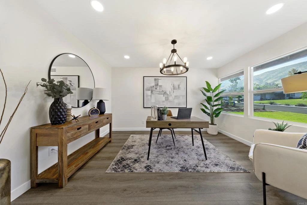 Welcome to a rare opportunity to own a versatile horse property in the desirable area of Jurupa Valley. This beautifully updated home offers stunning mountain views, exceptional space, and endless potential. Situated on an expansive 19,602 sq. ft. lot, just shy of half an acre, this property is ideal for those seeking flexibility, outdoor living, and future possibilities. The home features 4 bedrooms, 2 bathrooms, and approximately 2,028 sq. ft. of living space. Built in 1980, it offers a functional layout with a formal entry, separate living room, and a spacious family room with a beautiful stone fireplace that opens to the kitchen—perfect for both everyday living and entertaining. Vaulted ceilings in Family room and large windows provide an abundance of natural light throughout. The primary suite offers generous space along with a private ensuite bathroom. Recent upgrades include fresh interior and exterior paint, new flooring throughout, and updated finishes, kitchen cabinets and much more, making this home truly move-in ready. The expansive backyard includes two patios, barn, and ample space for horses, animals, recreation, or future improvements. The property is zoned for equestrian use and offers potential for an ADU, providing added flexibility and future value (buyer to verify with city/county). Additional features include a 2-car attached garage with direct access, RV parking, and plenty of space for vehicles, boats, equipment, or additional storage. Conveniently located near major freeways, this property combines rural charm with everyday accessibility.