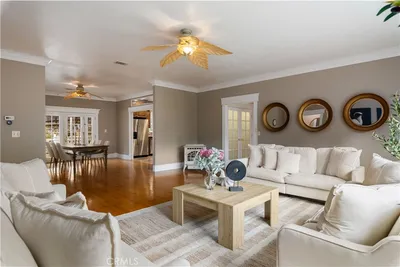 Ceiling Fans, Eat In Kitchen, High Ceilings, Laminate Counters, Living Room Deck Attached, Bedroom On Main Level, Main Level Primary, Primary Suite, Walk In Closets