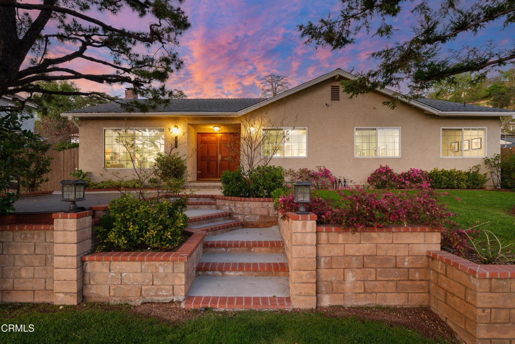 Nestled in the foothills of La Canada Flintridge, this beautifully remodeled home offers modern upgrades, spacious living & a separate 2-bedroom ADU, making it a perfect multi-generational residence or investment opportunity. Through the double-door entry, the living room welcomes you with wood-like laminate flooring, recessed lighting, a ceiling fan & a charming fireplace with a brick surround & wood mantle. A large picture window overlooks the beautifully landscaped front yard. The living room flows into the dining nook & remodeled galley kitchen, featuring soft-close cabinetry, quartz countertops, a 5-burner gas range with hood & a stainless steel dishwasher. Adjacent to the kitchen, the laundry area offers side-by-side washer & dryer plus access to the back patio. 3 well-sized bedrooms offer comfort & style. The first bedroom has recessed lighting, a spacious closet, & dual-pane windows. The second bedroom impresses with its bonus space, perfect for an office or playroom. Across the hall, a fully remodeled bathroom showcases an oversized glass-enclosed shower, custom tiled walls, a quartz vanity & linen shelving. The primary suite boasts a walk-in closet, recessed lighting & a sliding glass door to the backyard patio. The ensuite bathroom is updated with a tub & shower combination, custom tiled walls, quartz vanity & ample storage. Through the stone paver breezeway, you'll find the updated ADU, offering a private 1-bedroom, 2-bathroom living space. Inside, an open living area with recessed lighting & wood-like laminate flooring flows into a modern kitchen with quartz countertops, an eat-at island, a 5-burner gas range with hood & a dishwasher. The bedroom has dual-pane windows, a large closet & an attached ensuite bathroom with a tiled oversized shower & quartz vanity. A bathroom off the living area includes a tub & shower combination with a quartz vanity. The garage was converted to a spacious bonus room with recessed lighting, dual closets & a laundry closet. A sunroom leads to the backyard patio, providing additional space to enjoy. Completing the property is an exterior bathroom with tile flooring, a custom-tiled shower & a vessel sink vanity, as well as a separate bonus room with dual-pane windows & a wall A/C unit--ideal for a guest room or office. This turnkey home is conveniently located near top-rated schools, shopping & dining, offering a rare opportunity for flexible living in one of La Canada Flintridge's most desirable neighborhoods.
