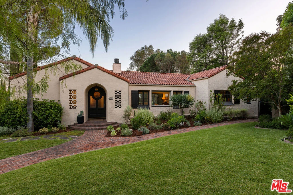Set on over an acre in La Canada's prestigious Alta Canyada neighborhood, this 1925 Spanish Colonial Revival was originally designed by lauded Los Angeles architect Arthur Rolland Kelly. In its most recent incarnation, the home has undergone an extensive renovation that maintains its character while realizing its true potential. Its coveted setting offers city and ocean views that stretch past the downtown LA skyline all the way to Catalina. These sweeping vistas are visible from much of the interior, through the broad picture windows and glass doors that line the home. 5027 Louise was designed to accommodate a joyous crowd: the living room includes built-in surround sound (with a stealthily disguised media cabinet) and flows out onto a covered patio and toward the kitchen, with its breakfast nook, breakfast bar, and original built-in corner hutches. The kitchen is lively with natural light reflecting off the marble counters and a matching suite of Thermador appliances including a double oven. For added convenience, there's a half bath and a separate laundry room with butcher block counters, an ironing station, and a glut of storage space just off the kitchen. But the piece de resistance is the dining room's trifold glass doors that transform the space into an inspiring indoor-outdoor experience, making your dinner parties, sunrise coffee, and sunset cocktails unmatched. Upstairs offers three bedrooms, two of which feature their own balconies, and a luxe en-suite bedroom that could be used as the primary. Downstairs you'll find an additional en-suite primary with built-in shelving, hidden wine storage, dual walk-in closets with custom built-ins, designer wallpaper, and french doors to the yard. The bathrooms have been thoughtfully designed with handmade zellige and marble tiles from Cle tile, designer fixtures throughout, and a steam shower in the upstairs primary. One third of the detached three-car garage has been converted to a studio/ office with a three-quarter bath; the current detached two-car garage offers an upgraded panel and EV charger. The generous grounds have also been considerably enhanced with lush drought-tolerant landscaping, all new fencing, orange, Meyer lemon, grapefruit, lime, mandarin, fig and pomegranate trees, a greenhouse so you can continue the growth, and a hot tub for when you want to soak in the view.