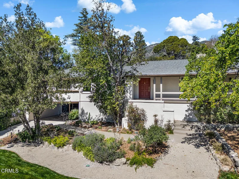 Set in the heart of La Crescenta, this charming 1937 home at 2345 Orange Cove Ave offers a coveted poolside lifestyle, timeless architectural detail, modern updates, and a location central to top-rated schools, neighborhood parks, and the shops and restaurants of La Crescenta and Montrose. A gated driveway and river rock landscape walls introduce the property, with a wide covered front porch welcoming you to the entry. Inside, the living room is anchored by a two-sided river rock fireplace, a striking architectural centerpiece, with a tongue and groove beamed wood ceiling overhead. The adjacent den enjoys the other side of the fireplace, a raised hearth bench, and french doors that open directly to the patio and pool, creating seamless indoor-outdoor living. Nearby, the modernized kitchen is anchored by a large waterfall island with breakfast bar and just-installed appliances including a stainless steel range and smart refrigerator. The kitchen flows into a comfortable dining area, which enjoys views of the pool and garden outside. Three bedrooms occupy the main level, two of which are primary suites, each with spa-like baths, soaking tubs, separate showers, and large walk-in closets. The first primary bedroom looks out to the pool and backyard, while the other opens through french doors to a large private balcony with Saltillo tile floors. Downstairs, two additional bedrooms, two three-quarter baths, and a large game room offer flexible space for activities with direct access to the convenient carport. Outside, lush grass areas in the front and back yards, a sitting deck, and a generous patio frame the sparkling pool and mountaintop views, an ideal setting for entertaining or relaxed Southern California living. Mountain Avenue Elementary, Rosemont Middle School, Crescenta Valley High School, and Two Strike Park are all just moments away. With its character details, modern updates, and exceptional poolside outdoor living, 2345 Orange Cove Ave is a rare find in one of the Foothills' most cherished communities.