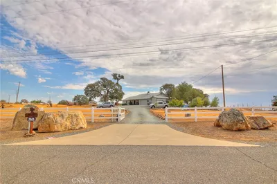 Are you ready to be amazed? This home offers some of the most breathtaking views of the Central Valley on 2.2 acres! Imagine starting your mornings w/ coffee as the sun rises over the horizon, or winding down in the evening beside your custom gas firepit under the stars. A long private driveway leads you to the welcoming entry. Inside, you'll fall in love w/ the cozy family room featuring a stacked stone fireplace w/ custom tile insets. The spacious dining room opens to the patio through sliding glass doors, while the kitchen offers an abundance of cabinetry & counter space. Both secondary bedrooms are generously sized w/ wood laminate flooring & ceiling fans, & the hall bath is complete w/ tile flooring & a shower-over-tub. The primary suite is a true retreat, featuring a huge walk-in closet, beautiful laminate flooring, & direct patio access. Additional highlights include: New roof (2023) & fresh exterior paint, 16' x 26' carport w/ electric lighting, 9' x 12' storage shed w/ loft, Solar-powered gated entry w/ keypad, RV/motorhome pad w/ septic, water, & electric hookups, Fenced garden area w/ raised beds, Slate-covered patio w/ mood lighting. The backyard feels like your own slice of paradiseendless views, serene landscaping, and a perfect setting for entertaining or relaxing