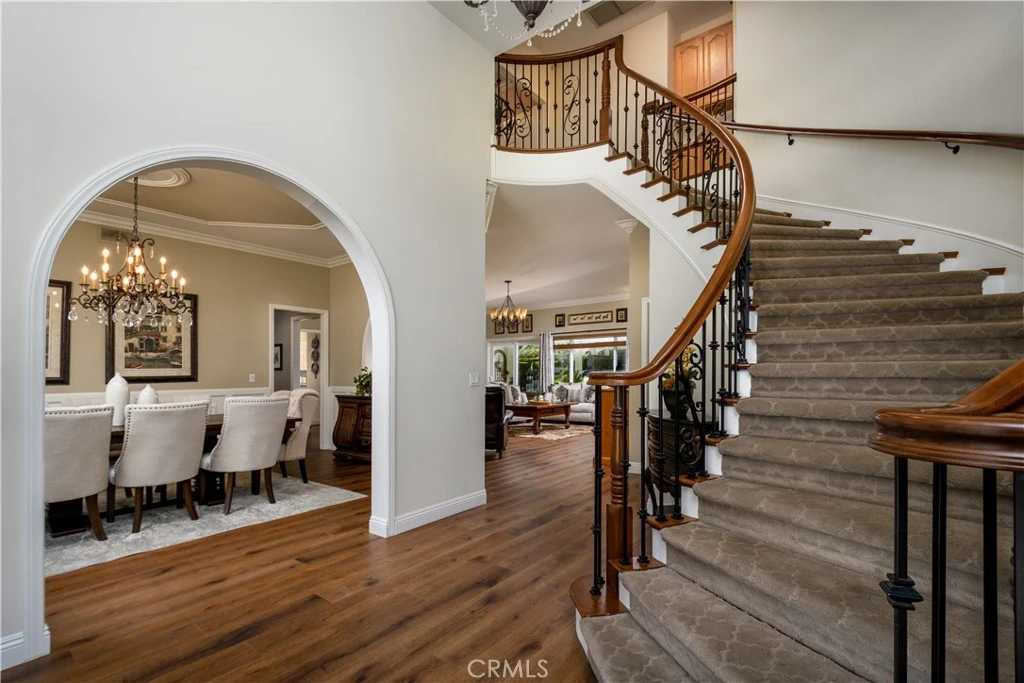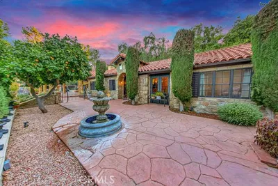 Set at the end of a private street in the scenic hills of La Habra Heights, this custom-built 1988 estate rests on a one-acre plus lot. A circular driveway, stone-accented exterior, and mature landscaping create a striking and private first impression. Spanning 3,848 square feet, this two-story residence offers four bedrooms and four bathrooms with a flexible, well-designed floor plan. A grand entry with soaring ceilings opens to a spacious great room ideal for gatherings, while a step-down formal living room adds architectural depth and separation of space. The chef’s kitchen is appointed with double Thermador ovens, Subzero built-in refrigerator, ample cabinetry, and generous prep space for entertaining. A main-level bedroom with en-suite bath provides ideal privacy for guests or multigenerational living. The primary suite is a true retreat, featuring an oversized bedroom with sitting area and fireplace, a spacious walk-in closet, and a grand en-suite bathroom with a large walk-in shower, separate toilet room, dual vanities, and a standalone soaking tub. Two additional upstairs bedrooms share a Jack-and-Jill full bathroom, and all bedrooms are generously sized and well positioned throughout the home. The backyard is a true retreat, featuring a gated saltwater pool and spa, lush lawn areas, mature trees, fountains & beautifully landscaped grounds with extensive hardscaping. A separate built-in covered BBQ area creates the perfect setting for outdoor dining and entertaining. The expansive lot also offers RV parking and excellent ADU potential. Additional highlights include a three-car garage, private drive, and a one-owner history reflecting pride of ownership throughout. This exceptional property combines privacy, space, and timeless design in one of La Habra Heights’ most desirable hillside settings.