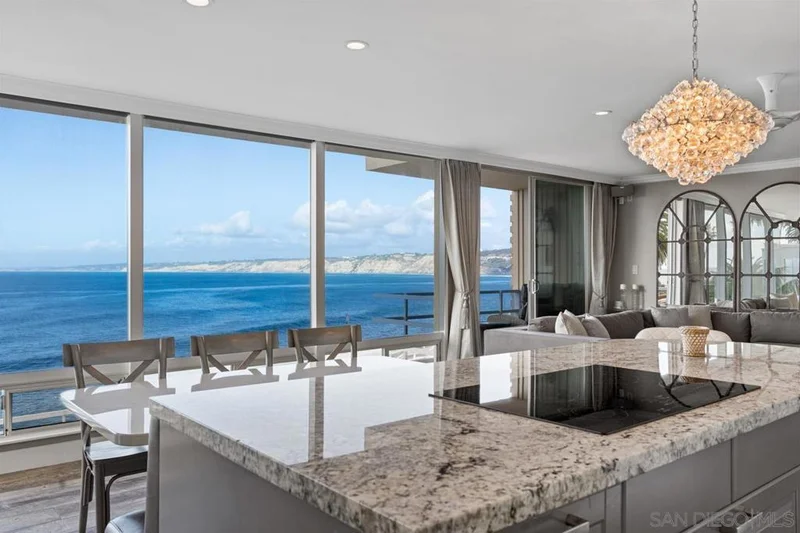 The Jewel- La Jolla Cove is a small beach surrounded by stunning seaside cliffs. It is one of the most photographed beaches in Southern California. This two bedroom oceanfront condo gives you an unobstructed view of the entire Cove. Stroll along the coast to see the sea lions and seals as the play and frolic. Walk to some of the most famous La Jolla Village restaurants including George's , Duke's, Eddie V's only to name a few. World class shopping is only steps away. In the summer months, the north facing La Jolla Cove is ideal for swimmers, snorkelers, and scuba diver's where water visibility can exceed 30 feet. This home features the most luxurious amenities... in the heart of La Jolla. No Pets.