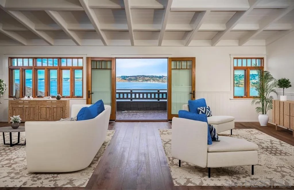 SHORT-, MID- & LONG-TERM RENTAL - FURNISHED OR UNFURNISHED - Oceanfront Gables at 1245 Coast Blvd This newly constructed oceanfront residence, known as Gables, is one of only three luxury homes on this historic site once part of the iconic Green Dragon Colony, offering a rare opportunity for primary or secondary residents through flexible lease options. Designed to reflect classic La Jolla architecture, the home features fire-resistant shingle siding, peaked rooflines, and multiple bricked terraces capturing dynamic ocean views from every level. A gated entry leads to a Mahogany front door opening into a dramatic living space with soaring ceilings, expansive ocean-view windows, and seamless flow into a dining area and chef’s kitchen with Carrera marble countertops, bar seating, and premium Wolf, Sub-Zero, and Asko appliances. A Dutch door opens to an outdoor dining terrace, while a den or media room offers flexibility as a fourth bedroom. The second level includes a luxurious primary suite with ocean-view tub and shower, two guest bedrooms, and a laundry room. The top floor offers a large multipurpose space with full bath ideal for additional sleeping, recreation, or office use. Elevator access connects all levels. Additional features include an oversized four-car garage, engineered oak flooring, concrete subfloors, Mahogany-framed windows, Mitsubishi zoned HVAC, and full fire sprinkler system. Located steps from coastal paths, beaches, and the Village, this home is designed for elevated coastal living and entertaining. Rates vary by season and length of stay. Photos reflect a previous furnishing. The home may be leased furnished or unfurnished. If furnished is desired, the home will be professionally redesigned and newly furnished prior to occupancy following the current tenant’s move-out in May.