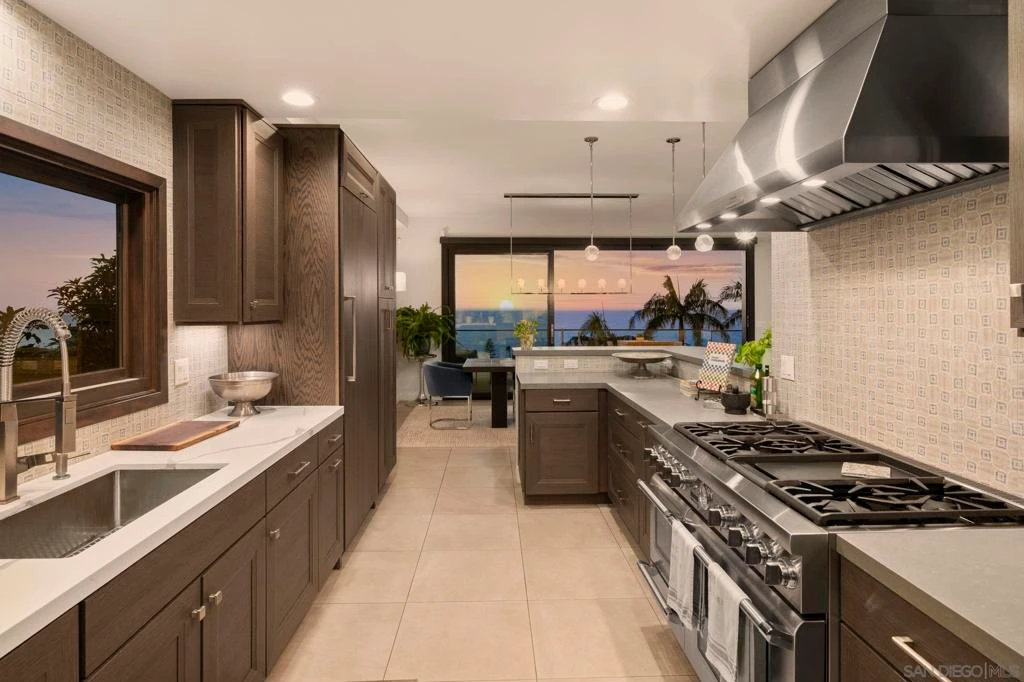 Stunning hilltop home offering expansive, unobstructed 180-degree ocean vistas—all the way from the Cove, past Black’s Beach, and to the North beyond. Perched in the coveted Country Club neighborhood, this exquisite home delivers sweeping sea views and nightly sunsets that redefine living well. Nestled among sculpted hills for ultimate privacy and serenity, the residence marries refined elegance with effortless, everyday comfort. Thoughtfully arranged over three levels with main-floor entry so it functions like a graceful two-story, the home is ideal for entertaining, relaxed family life, and taking full advantage of its dramatic setting. Just minutes from world-class dining and boutique shopping—and within walking distance of The Village, the La Jolla Natural Park trails to Mt. Soledad, and more—this is a rare opportunity to own a move-in-ready coastal retreat that invites you to savor every vista and moment. Act now to make this coastal sanctuary yours.