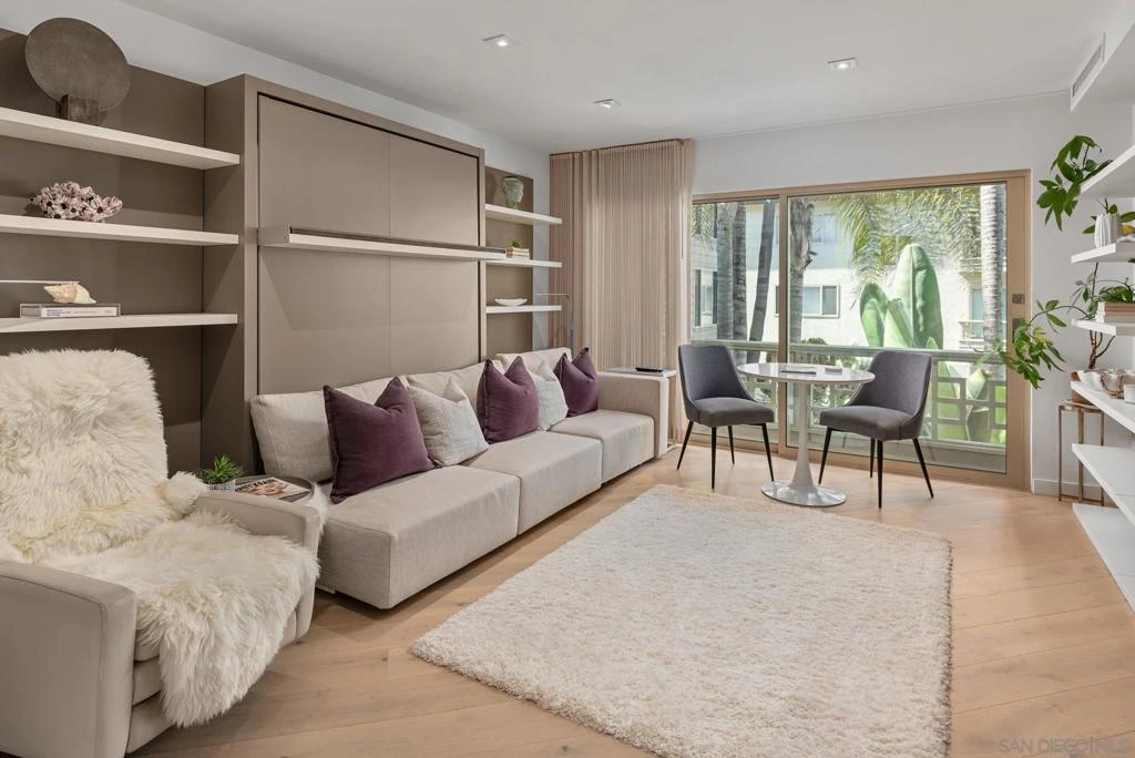 Welcome to this stunning, fully renovated oceanfront condo in La Jolla, offering unparalleled private beach access to enjoy swimming and breathtaking ocean sunsets. This elegant and fully furnished residence features modern European design throughout, providing a blend of sophistication and comfort. Enjoy the beautiful contemporary French oak flooring and luxurious Crema limestone bathroom. The living room can be transformed into a private bedroom with pocket door and hidden queen sized pulldown bed, offering a versatile option for guests. Dramatic views overlooking famous “horseshoe” beach and surf break. Spectacular tides pools to explore during low tide. Walk to many restaurants and shops in the historic village. Recreation center/tennis courts, Museum of Contemporary Art San Diego are just around the corner and La Jolla village now boasts the new Conrad Prebys Performing Arts Center. University of California San Diego is minutes away. Fabulous pied-a-terre! – All furniture and appliances are included in the sale, making this a move-in-ready home. Just bring your suitcase and toothbrush—unpack and start enjoying your new oceanfront lifestyle. Monthly HOA includes gas, electricity, water, basic cable and internet/Wi-Fi, trash and recycling service, large common patio areas for outdoor entertaining, additional laundry facility with jumbo washers and dryers Unit includes 1 secured parking space and 1 storage locker and 1 pet allowed up to 30 lbs.
