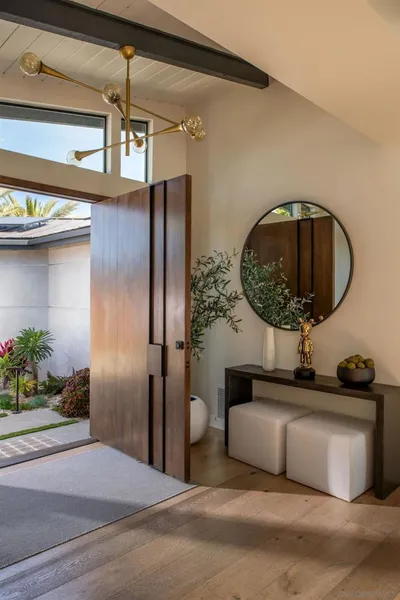 Welcome to Rutgers Road, a beautifully constructed ocean-view residence in La Jolla where no detail has been overlooked, with over $1.2M in professionally designed upgrades. Showcasing exceptional landscape architecture, the outdoor spaces feature an ocean-view pool and spa with a cascading waterfall, outdoor movie theatre, and multiple thoughtfully designed living areas and amenities. Perched in the iconic hills overlooking the Pacific, the home spans three levels yet lives primarily like a single story, with the main floor offering the kitchen, living room, view deck, primary suite, two additional bedrooms, office, laundry, pantry, garage access, and a private housekeeper’s room—an incredibly rare layout for a home of this scale. The primary suite is a true retreat, featuring a spa-inspired marble bathroom with heated floors and a spacious walk-in closet. Extensively upgraded throughout, the home blends refined interiors with resort-style outdoor living. The backyard has been transformed into a private oasis with a new pool and spa, elevated terrace with glass railings, Trex decking, outdoor kitchen and BBQ, fire pit, motorized pergola with heaters, infrared sauna, and cold plunge, all enhanced by professional landscaping, drainage, and lighting. The front yard offers striking curb appeal with curated landscaping, including King Palms, olive trees, and a statement fountain. Additional upgrades include exterior and structural improvements, custom railings, upgraded electrical and AV systems, solar, security, and custom window treatments. A true turnkey offering combining