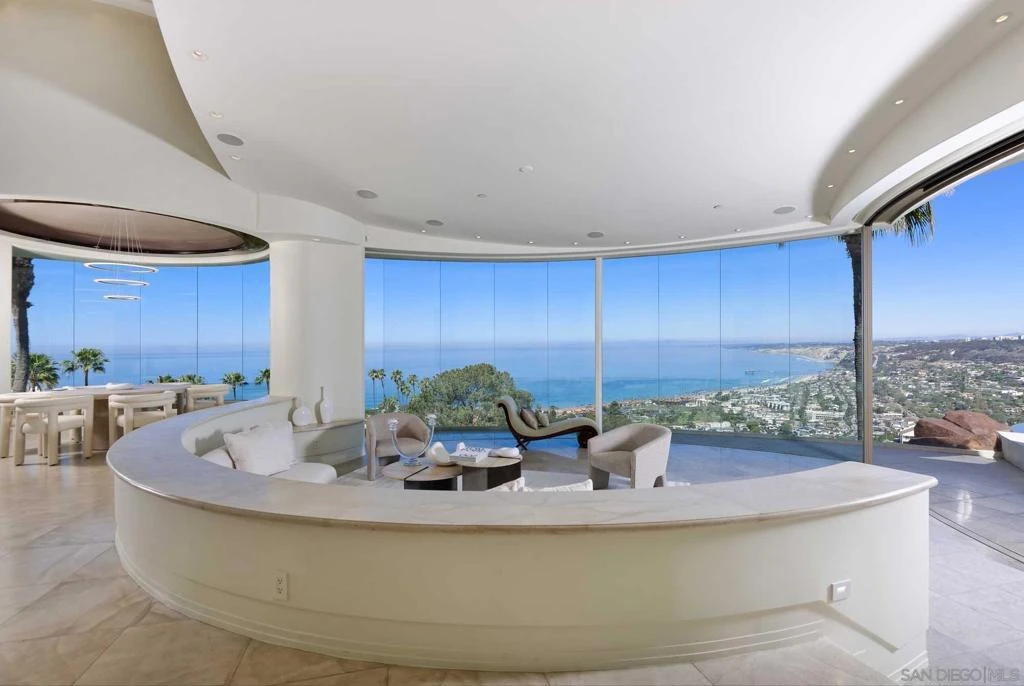 PHENOMENAL UNOBSTRUCTABLE PANORAMIC VIEWS AND ARTFUL ARCHITECTURE, echoing the natural curves of the coastline on the coveted "green side" of La Jolla's Country Club neighborhood, offer a unique and peaceful luxury lifestyle in this breathtaking showplace. Created with boundless imagination and creativity and finest structural and design resources--and priced far below replacement cost-- this home is designed to maximize immersion into the experience of indoor-outdoor enjoyment of its spectacular site. Views sweeping from sparkling city lights and snow-capped mountains to the rugged sunlit cliffs of the North Shore, La Jolla Shores' Beach and Village, La Jolla Beach & Tennis Club, sunsets, stretching to picturesque La Jolla Cove, are enjoyed from almost every living area, and recent renovations ensure every comfort and convenience have been addressed with extreme attention to quality. With Hillside Drive largely built-out with magnificent residences, the owners of this home will also enjoy precious serenity unbothered by the constant construction afflicting other upscale areas of town. Incomparable value, incomparable living, and a dramatic, gracious welcome for entertaining friends and family...