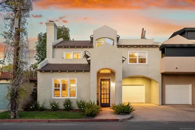 Elegant single-level home in the serene and highly convenient La Jolla Shores Heights community featuring 3 bedrooms, 2 bathrooms, an attached 2-car garage, and beautiful outdoor spaces. This corner unit provides a nice sense of separation from neighbors, excellent sunlight, and a bonus lawn area. The living room is cheery and cozy with vaulted ceilings and skylights, a fireplace, and built-in cabinetry and shelving. The comfortable dining area flows seamlessly to the patio and also to the open-concept kitchen with a peninsula. There is ample workspace in this tastefully updated kitchen! The spacious primary suite enjoys soaring ceilings, an ensuite bathroom with dual vanities and a walk-in shower, and a private patio. Two additional bedrooms are generously sized; one is currently used as a bright home office with skylight, built-ins, and direct garage access. The hall features a coat closet, a buffet/pantry station that serves the kitchen, and a side-by-side laundry closet with shelving. Additional features include an owned solar system, water softener, and one off-street parking space in addition to the garage. La Jolla Shores Heights features walking trails, a tennis court with basketball hoop, a playground, and a pool accompanied by a wading pool, changing rooms, and restrooms. Close proximity to freeway access, UCSD, YMCA, Westfield UTC, highly rated schools, and so much more. This is a wonderful home for life’s many chapters.