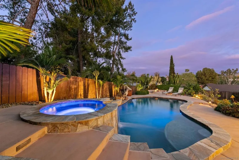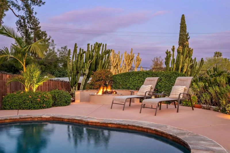 Exceptional single-level La Mesa residence on an expansive lot, designed for seamless indoor-outdoor living. The resort-style backyard features a heated saltwater pool and spa with waterfalls, gas fire pit, outdoor kitchen with bar seating, large covered patio, and a grassy area framed by native landscaping, including palms, succulents, and cacti, plus a serene courtyard with a water feature. Inside, timeless original hardwood floors complement numerous upgrades, including a remodeled kitchen with granite countertops, stainless steel appliances, and custom cabinets. Freshly painted throughout, the home also offers custom closet storage with mirrored doors, central A/C and heating, dual-pane windows, LED recessed lighting, and modern ceiling fans and fixtures. The primary retreat with walk-in closet and remodeled bathroom featuring dual sinks and a spacious walk-in shower with dual shower heads. Additional highlights include a 2-car garage with direct access, paver-stone driveway, and extra parking for an RV or boat. Ideally located near shopping, dining, parks, and recreation, including Lake Murray and Cowles Mountain, with easy access to Costco, Target, and Trader Joe’s.