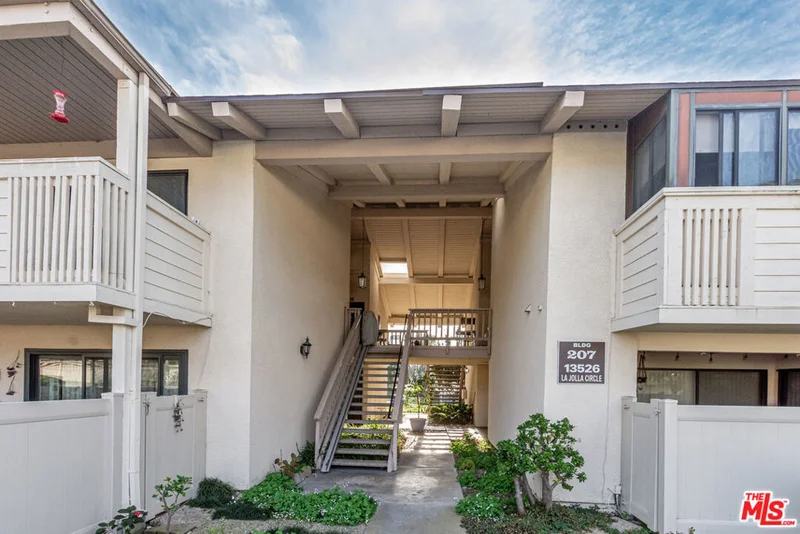 A beautifully remodeled condo in La Mirada Landmark 55+ Community. The entire unit (kitchen, bathrooms, windows/shutters, flooring, paint, etc.) has been recently renovated and impeccably maintained. Top floor unit with only one shared wall. The large balcony has been enclosed to create an extension of the living room, providing versatile extra living space. A ton of warm, national light comes in as the unit faces south. Other features include all new appliances (dishwasher, microwave, stove, washer & dryer), a soaring vaulted ceiling in the living room, skylights in both bathrooms, nicely tucked away stackable in-unit laundry closet. Detached one car garage is in close proximity. Ideally located in the complex, the unit is away from the main road while being a nice stroll away from the club house. HOA covers water and trash. Landmark is a 24/7 guard-gated community offering a serene and tranquil environment in its lush, landscaped grounds with tree-lined walkways. Landmark is also a vibrant community where residents enjoy exclusive access to many amenities and activities including a clubhouse, library, swimming pool/spa, tennis courts, pickleball courts, fitness center, putting green, ample monthly social events. The complex is conveniently located adjacent to La Mirada Golf Course and La Mirada Community Regional Park. Major shopping, dining and medical facilities are also within minutes' driving. This has got to be one of the best offerings currently in Landmark. Do not miss this opportunity!