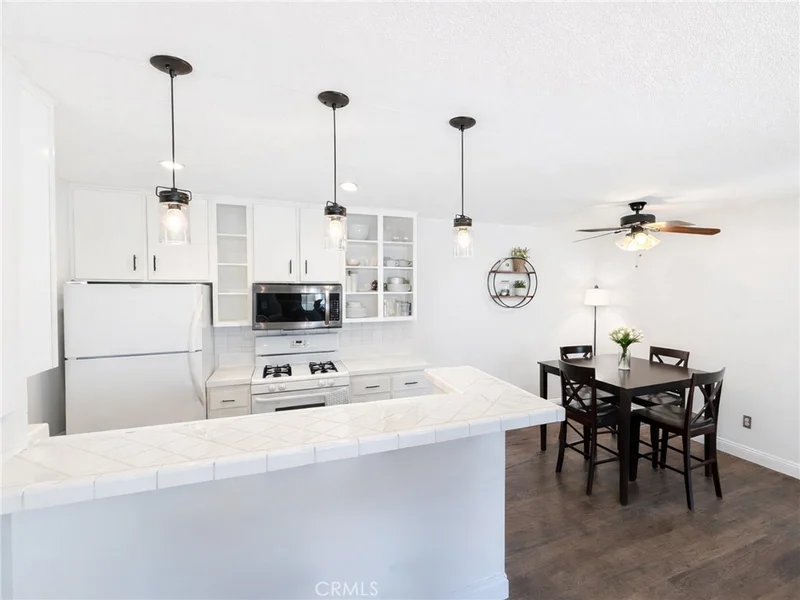 Welcome to this charming upstairs 1 bedroom, 1 bath condo in the desirable gated community of Los Olivos in La Mirada. This condo features an open living room to kitchen floor plan that creates a bright and spacious feel. The bathroom has been completely remodeled with new tile, modern cabinetry, contemporary trough-style sink, updated fixtures, and stunning LED lights and mirror that add elegance and functionality. The large bedroom offers a high vaulted ceiling and a spacious walk-in closet, providing plenty of storage. Central air conditioning and heating keep the home comfortable year-round. The Living room has large glass sliding doors that open to your private balcony. HOA dues are an affordable $330 per month, covering water, trash, exterior maintenance, and beautifully maintained grounds. This unit is conveniently located near the community's amenities, including the pool, spa, tennis/pickleball courts, clubhouse, and community laundry room. Don't miss out on this wonderful opportunity to enjoy comfortable condo living with great amenities! Complex is FHA Approved.