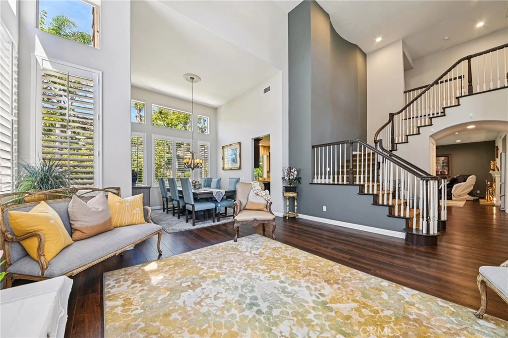 A stunning home in the prestigious Hillsborough Collection—one of the largest floor plans within this desirable gated community. Nestled in a warm, quiet neighborhood where pride of ownership is evident throughout, this home offers both elegance and comfort. Step through the grand double-door entry into an expansive living room featuring dramatic cathedral ceilings and an abundance of natural light. A separate formal dining area provides the perfect setting for gatherings, while the inviting family room, complete with its own fireplace, creates a cozy space to unwind. A true chef’s dream kitchen that is sure to impress—featuring granite countertops, stainless steel appliances, a center island, and a walk-in pantry. Enjoy serene backyard views from the kitchen sink and breakfast nook. Upstairs, the spacious and elegant primary suite offers a coffered ceiling, ceiling fan, walk-in closet, and a spa-inspired bathroom with dual vanities. A versatile bonus room provides the perfect space for a home office, media room, or playroom. A highly desirable main-floor bedroom with an adjacent full bathroom makes an ideal setup for extended family or overnight guests. The professionally landscaped front and backyard feature a variety of fruit trees and a covered patio—perfect for entertaining or relaxing outdoors. Ideally located across from Behringer Park and within walking distance to La Mirada Golf Course, this home truly offers the best of convenience and lifestyle. An entertainer’s paradise and a beautifully maintained residence—ready for you to call it your own.