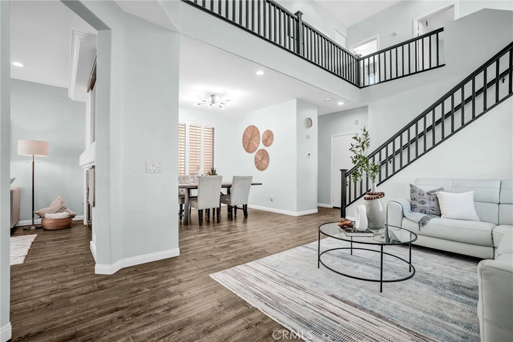 FABULOUS LAYOUT AND SUPERB SETTING! Absolutely spectacular property located in the Lyon Gallery enclave within the prestigious Hillsborough Collection gated community of La Mirada. An incredible opportunity to live in this exclusive neighborhood! Featuring three bedrooms and 2.5 bathrooms, this home is perfectly situated in a quiet location and thoughtfully designed for today’s lifestyle with seamless flow throughout. From the moment you arrive, the fantastic curb appeal reflects true pride of ownership. Move-in ready with opportunity to add your personal touches. A grand entry with dramatic cathedral ceilings welcomes you into an open-concept floor plan filled with an abundance of natural light. The inviting living room opens to the formal dining room, creating a wonderful space for entertaining family and friends. A convenient downstairs half bathroom adds functionality. Beautiful waterproof laminate flooring runs throughout the home. The comfortable family room features a fireplace, media niche, and custom cabinetry — perfect for gathering and relaxing. The well-appointed kitchen is upgraded white cabinetry, granite countertops, a beautiful tile backsplash, and stainless steel appliances. The spacious and inviting primary suite offers a resort-style bathroom with dual sinks, a soaking tub, separate shower, and walk-in closet. Plantation shutters, recessed lighting, and upgraded light fixtures enhance the home’s appeal. A handy upstairs laundry room adds everyday convenience. Step outside to a generously sized backyard ideal for outdoor entertaining. Ideally located near the Los Coyotes Country Club and the beautiful Clark Regional Park, this home also offers exceptional convenience with close proximity to everything you need. A rare opportunity in a highly desirable gated community — don’t miss it!