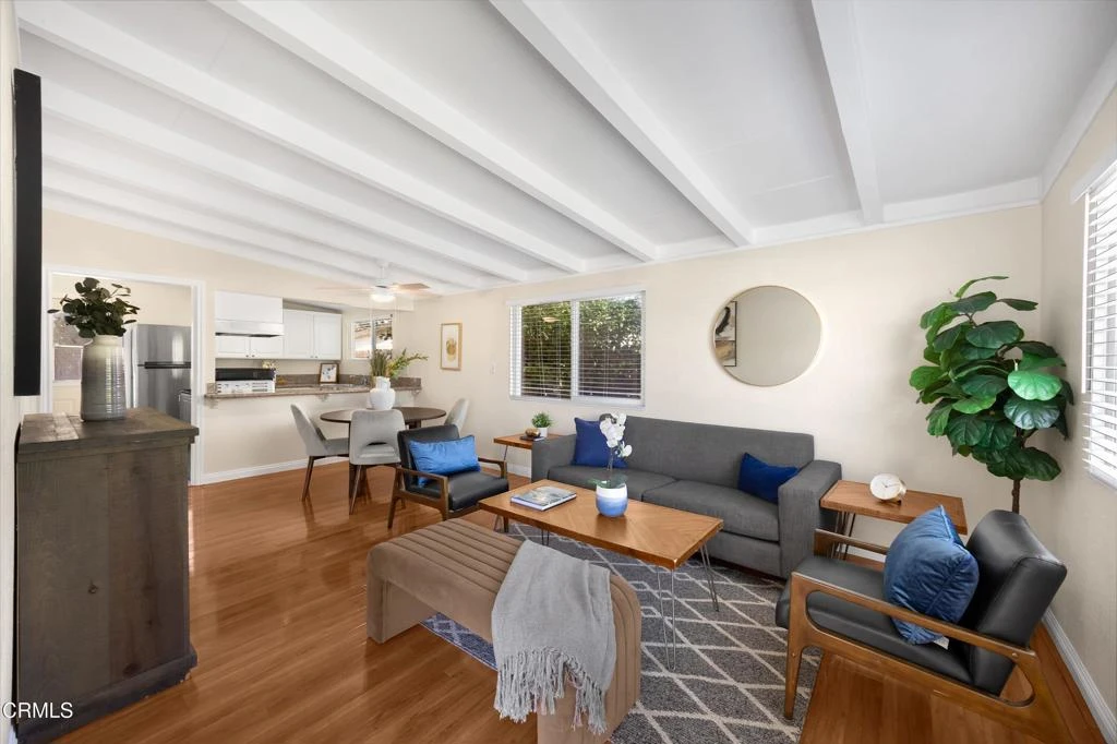 Homeownership awaits with this refreshed single-family residence designed to make a lasting impression. Offering 3 bedrooms, 1 bathroom, and a large backyard, this home is the perfect blend of charm, comfort, and opportunity for first-time buyers or anyone looking for move-in ready living. From the moment you arrive, the gated driveway and inviting front facade, highlighted by elegant arches along the porch, set a warm and welcoming tone. A brand-new front door and fresh interior and exterior paint using quality Dunn-Edwards finishes add to the home's crisp, modern appeal. Inside, the living room showcases stylish wood laminate flooring paired with eye-catching wood beamed style ceilings, creating a space that feels both cozy and distinctive. The open concept kitchen seamlessly connects to the dining and living areas, making it ideal for gatherings. Enjoy cooking in the upgraded kitchen featuring new granite countertops, sink and disposal, and new appliances including a range, range hood, and dishwasher. Convenient indoor laundry hookups are located just off the kitchen for added functionality. Down the hall, you'll find three generously sized bedrooms, each featuring matching wood beamed style ceilings and laminate flooring. The updated bathroom is bright and attractive, complete with a new vanity, new toilet, and a shower/tub combination with sleek glass doors. The outdoor space offers even more to love, with a spacious backyard that includes two separate patio areas, perfect for relaxing or entertaining, and a newly installed rear fence. Fruit trees in both the front and back yards add a special touch of homegrown enjoyment, while the ample lot provides room to possibly expand or simply enjoy the outdoors. Adding to the home's versatility, the garage has been converted into a bonus room (not included in the square footage), offering endless possibilities, whether you envision a game room, home office, gym, or creative space. Ideally situated near shopping, dining, the Industry Hills Golf Club at Pacific Palms Resort, and with convenient freeway access, this home delivers both lifestyle and accessibility. Don't miss your chance to make it yours.